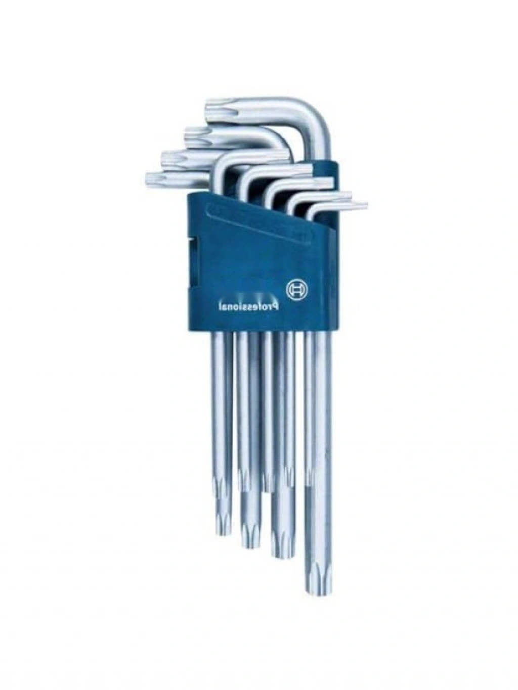 Farklı boyutlardaki anahtarları içeren bu profesyonel Torx alyan anahtarı seti, evrensel kullanım için idealdir. S2 sertleştirilmiş çelikten üretilmiş olup, optimum tork sağlar. Konforlu uzunluğu ile zor erişilen alanlara 25° açı ile ulaşmanıza yardımcı olur. Set, 10, 15, 20, 25, 27, 30, 40, 45 ve 50 mm boyutlarındaki anahtarları içerir.