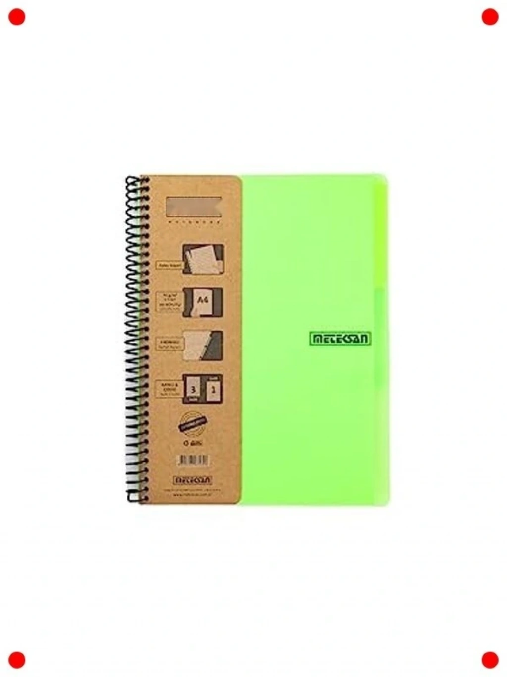 Birden fazla ders veya konu için ideal olan bu A4 boyutundaki spiralli defter, organizasyonunuzu kolaylaştırır. Altı ayrı konuyu (üçü kareli, üçü çizgili) barındıran 180 yapraklık geniş kapasitesiyle tüm notlarınızı tek bir yerde toplar. Dayanıklı PP (polipropilen) kapağı, defteri dış etkenlere karşı korurken, canlı yeşil rengiyle dikkat çeker. Sağlam spiral cilt, sayfaların kolayca çevrilmesini ve defterin düz bir şekilde açılmasını sağlar. Öğrenciler, öğretmenler ve çoklu proje yöneten profesyoneller için pratik ve fonksiyonel bir çözümdür.