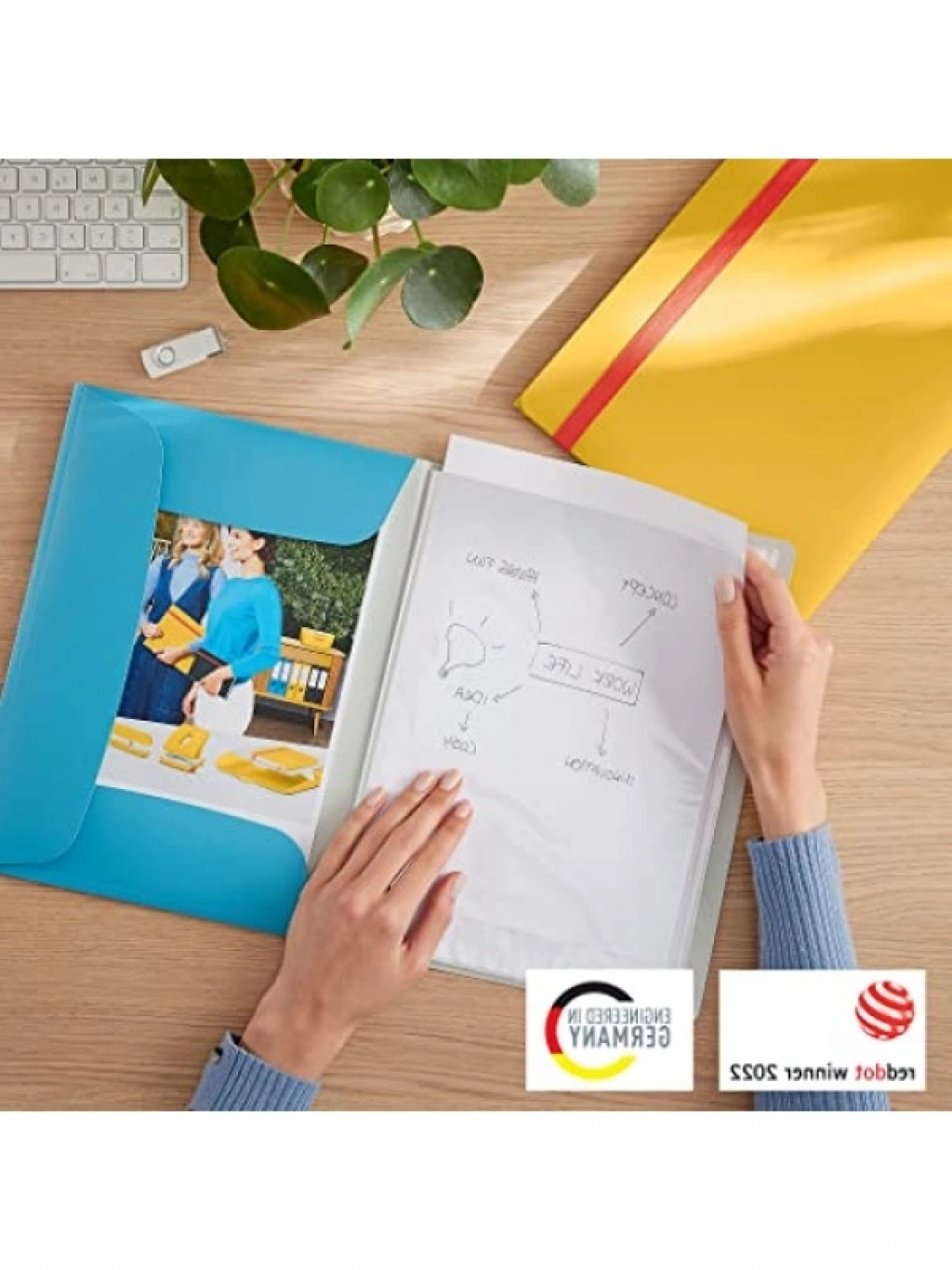 A4 formatında tasarlanmış bu mobil sunum dosyası, 40 sayfaya kadar (80 g/m2 kağıt) belgeyi güvenli bir şekilde saklayabilir. Arka tarafındaki ek katlamalı koruyucu kapaklar, yüksek kapasite sağlar. Güçlü lastik bant kilidi ile belgelerinizi güvende tutar. Hafif ve geri dönüştürülmüş malzemeden üretilmiş olup, asit içermez. Verimli bir çalışma ortamı için idealdir ve Cosy ürün yelpazesinin diğer ürünleri ile kombine edilebilir.