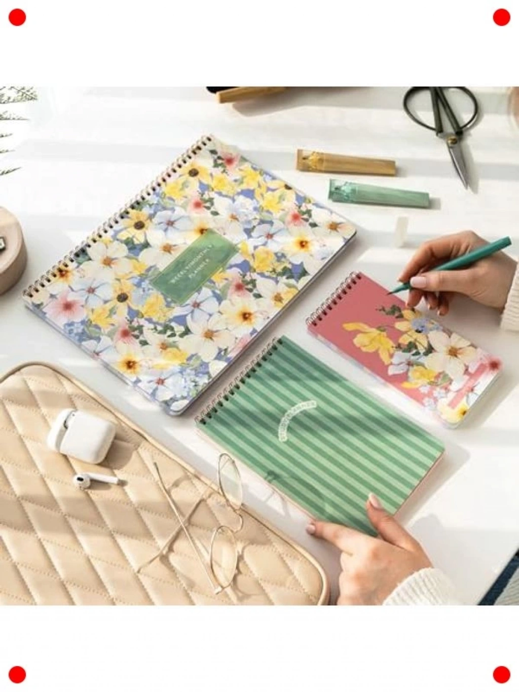 Günlük ve haftalık planlarınızı organize etmek için tasarlanmış bu 3'lü A4 boyutunda süresiz planlayıcı seti ile hayatınıza düzen katın. Her bir sayfada bulunan şık çiçek desenleri, çalışma alanınıza ferah ve ilham verici bir dokunuş ekler. Süresiz yapısı sayesinde dilediğiniz zaman kullanmaya başlayabilir, hiçbir sayfayı boşa harcamadan yılın her günü için planlama yapabilirsiniz. Görev listeleri, randevular ve önemli notlar için geniş alan sunarak verimliliğinizi artırır. Masanızda az yer kaplayan pratik tasarımıyla her an elinizin altında olacak. Hem öğrenciler hem de profesyoneller için ideal olan bu set, hedeflerinize ulaşmanızda size yardımcı olacak.