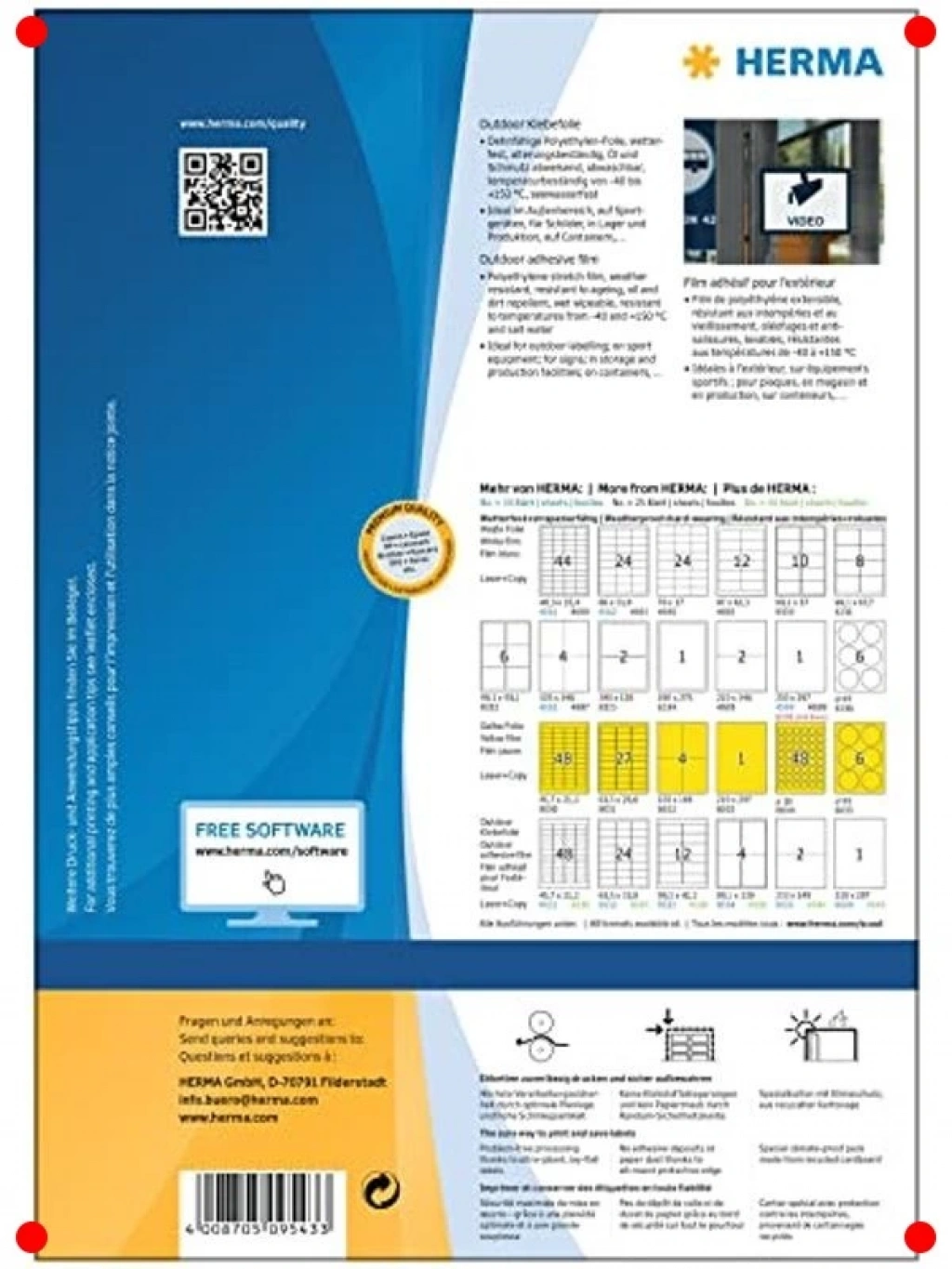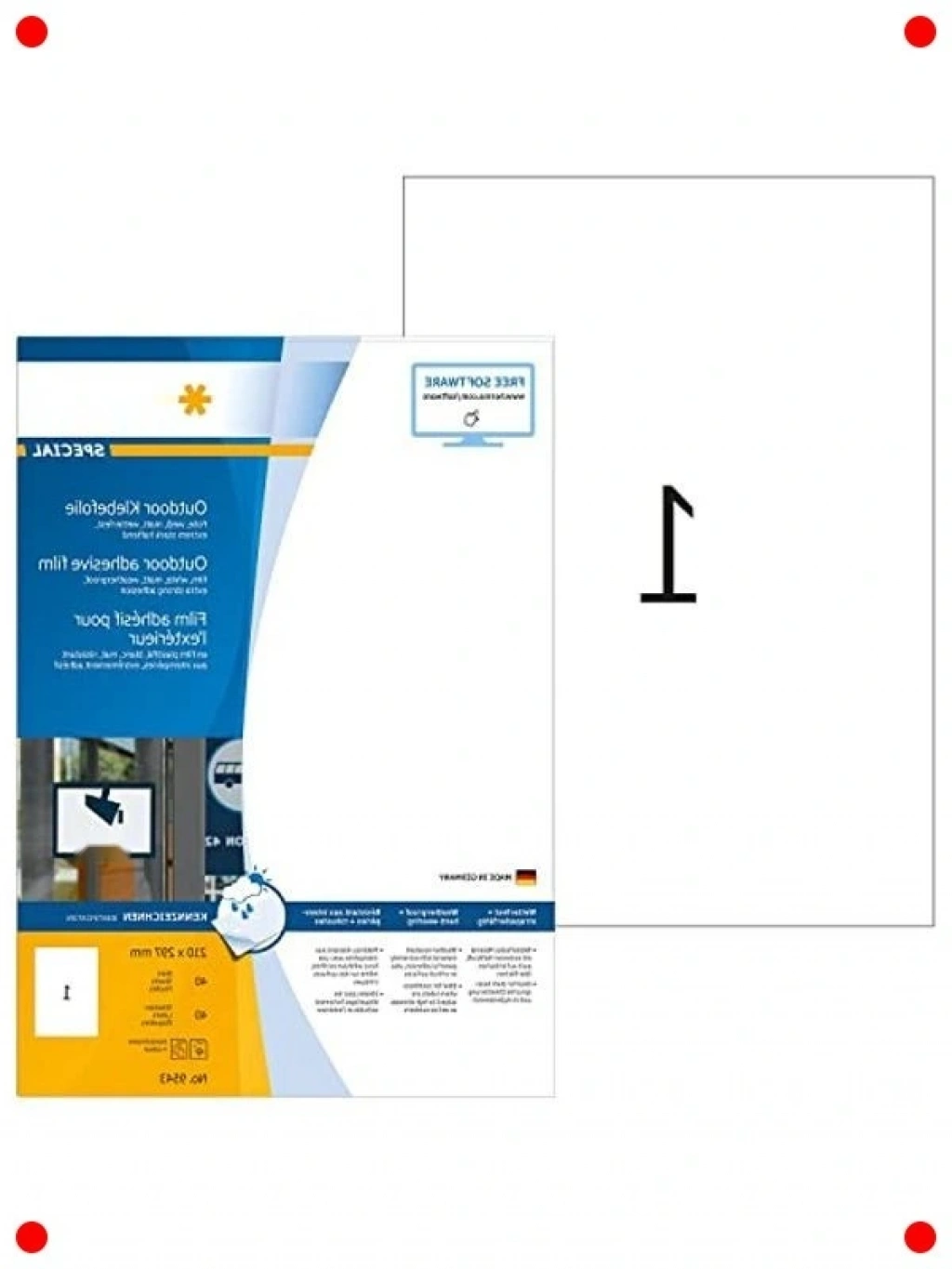 Dış mekan koşullarına meydan okuyan bu A4 boyutundaki kendinden yapışkanlı etiket seti, zorlu çevrelerde bile dayanıklılığını korur. Suya, yıpranmaya, UV ışınlarına ve sıcaklık değişimlerine karşı dirençli özel folyo malzemesi sayesinde uzun ömürlü kullanım sunar. Mat beyaz yüzeyi, net ve profesyonel baskılar için idealdir. Uyarı işaretleri, bilgilendirme etiketleri, ürün etiketleri veya açık hava reklamcılığı gibi birçok alanda güvenle kullanılabilir. Güçlü yapışkanı sayesinde uygulandığı yüzeyde sıkıca tutunur. Dış mekan projeleriniz için mükemmel bir çözümdür.