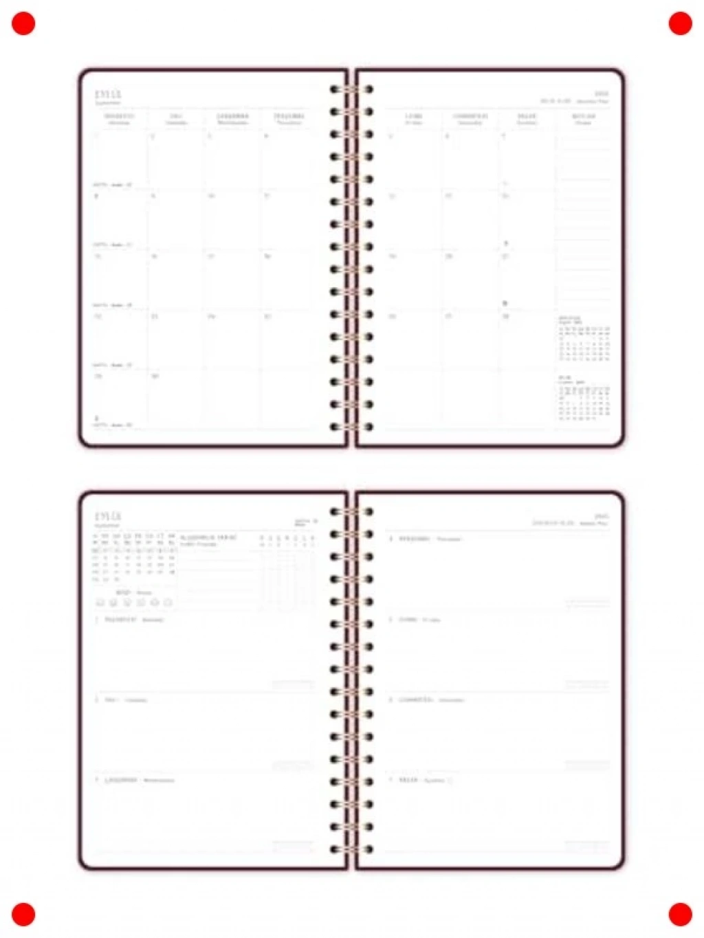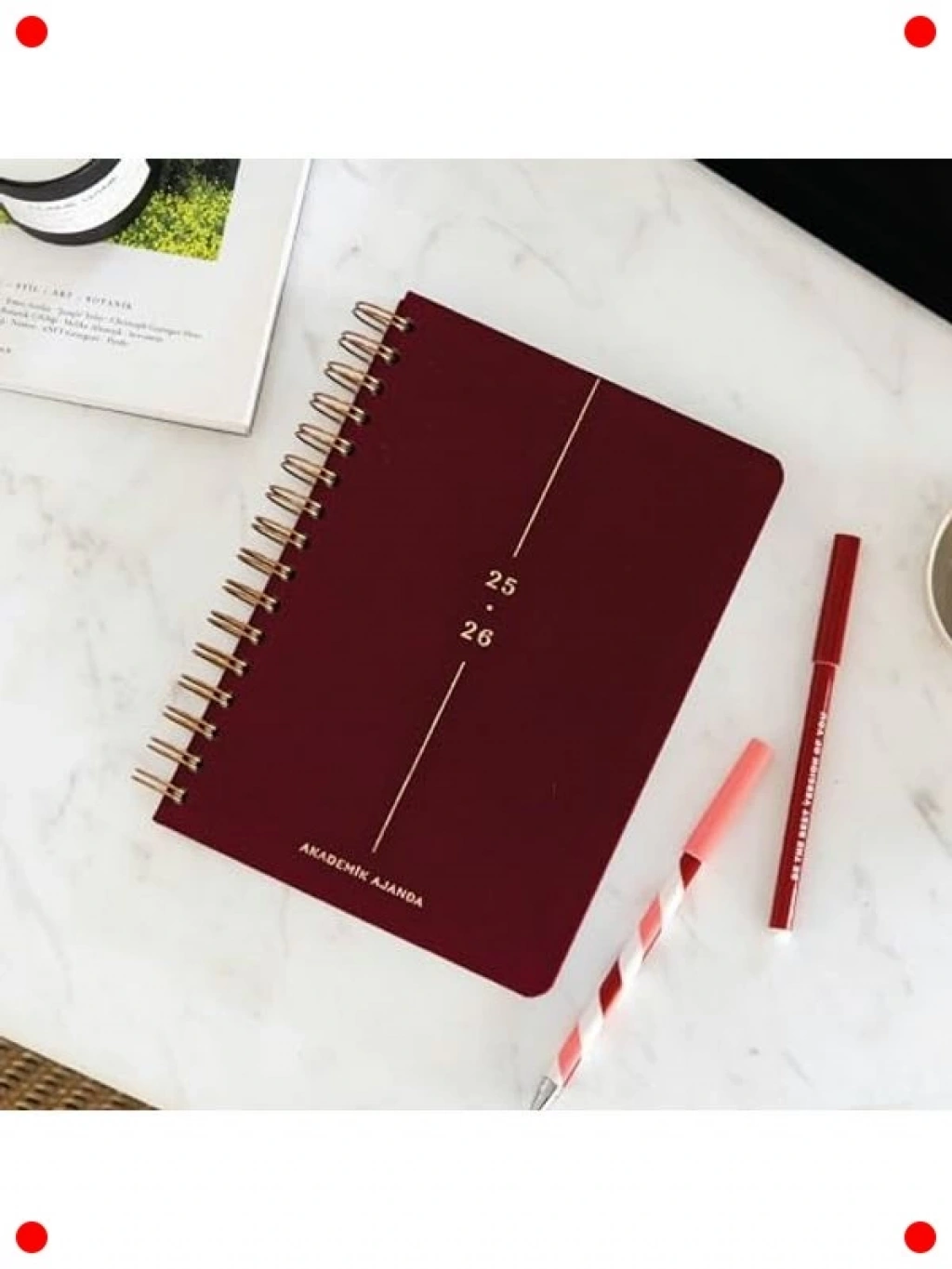 2025-2026 akademik dönemi için özel olarak tasarlanmış bu A5 boyutundaki spiralli ajanda ile planlarınızı kusursuzca yönetin. Yüksek kaliteli keten kapağı, şık bordo rengiyle estetik bir görünüm sunarken, ajandanın dayanıklılığını artırır. 16 aylık detaylı planlama alanı sayesinde tüm akademik yılınızı ve sonrasını organize edebilirsiniz. Haftalık, aylık ve yıllık görünümler, randevuları, ödevleri ve önemli tarihleri kolayca takip etmenizi sağlar. Notlar ve hedefler için ayrılmış ek sayfalar, düşüncelerinizi ve projelerinizi düzenlemenize yardımcı olur. Hem öğrenciler hem de eğitimciler için ideal bir planlama aracıdır.
