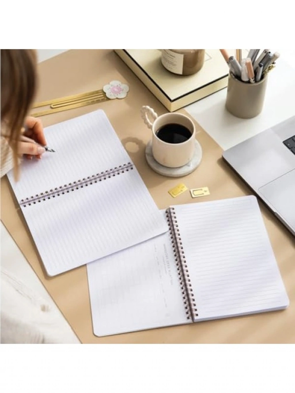 Bu iki adet A5 spiralli defter seti, her biri 80 yapraklık (toplam 160 sayfa) yüksek kaliteli kağıttan üretilmiştir. Kişisel bilgi sayfası ve ders programı ile planlama yapmanızı kolaylaştırır. Çizilmez karton kapak ve sağlam bronz spiral ile uzun ömürlüdür. Günlük notlar, toplantı planları veya kişisel hedef takibi için idealdir. Setle birlikte mini cep defteri de hediye olarak gönderilmektedir.