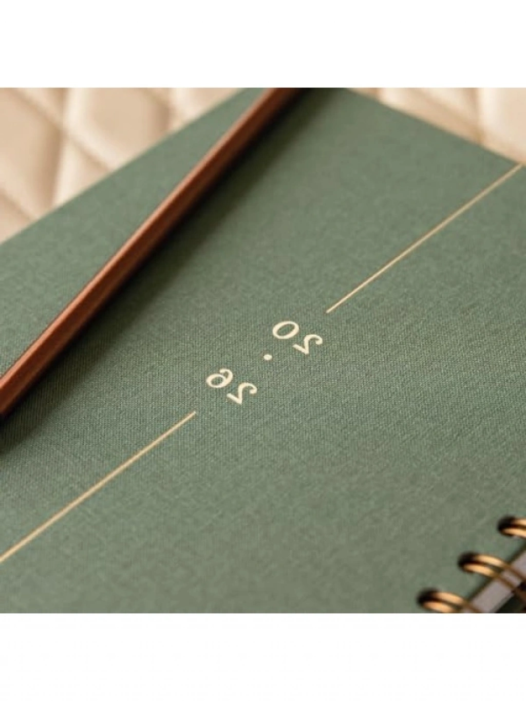 2026 yılına ait A5 boyutundaki spiralli ajanda, haftalık planlamalarınızı düzenlemeye yardımcı olur. Kaliteli malzemeden üretilmiş olup, şık yeşil rengiyle dikkat çeker. Ajanda, tüm yıl boyunca etkin bir planlama yapmak isteyenler için ideal bir üründür.