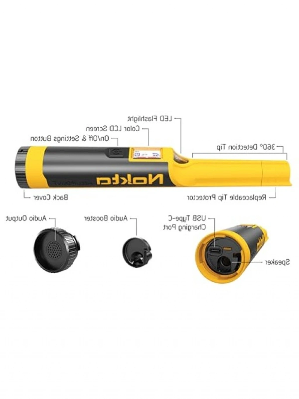 AccuPOINT Pointer dedektör, 10 feet derinliğe kadar su geçirmez özellik taşır. Kablosuz Bluetooth bağlantısı ile gecikmesiz ses sunar. Renkli LCD ekranı sayesinde kullanım anında pil durumu ve hassasiyet seviyesi gösterir.