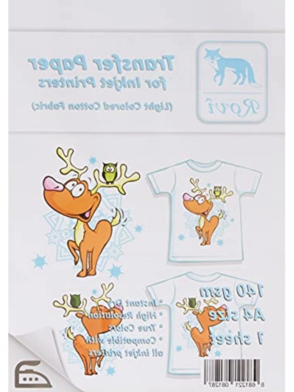 Açık renk pamuklu kumaş transfer kağıdı, 140 gsm ağırlığında A4 boyutundadır. Hem süblimasyon hem de normal yazıcı mürekkebi ile uyumlu olarak kullanılabilir. Bu transfer kağıdı, press makinesi veya ütü ile kolayca uygulanabilir ve tekstil ürünlerine baskı yapma imkanı sunar.