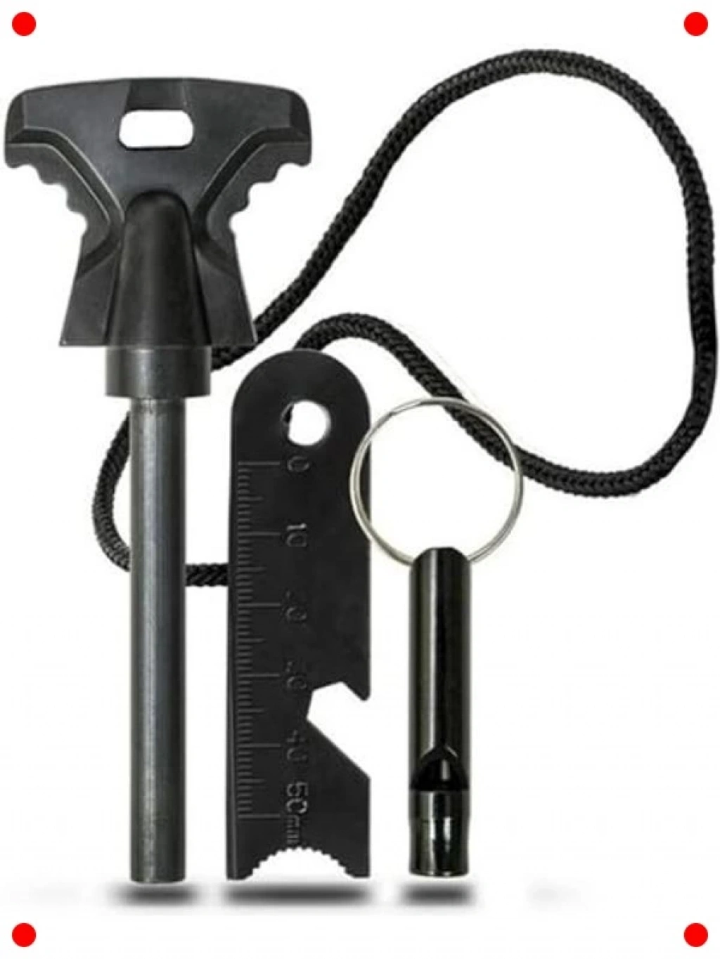Doğa maceralarınızda, kamp gezilerinizde veya acil durumlarda güvende olmanızı sağlayacak bu kompakt ateş başlatıcı kiti ile her zaman ateşe hazır olun. Magnezyum çubuk ve çakmaktaşı kombinasyonu, en zorlu hava koşullarında bile kolayca kıvılcım üreterek ateş yakmanızı sağlar. Sağlam ve dayanıklı yapısı, uzun süreli kullanım için tasarlanmıştır. Kitte bulunan ekstra düdük, acil durumlarda sinyal vermek veya grubunuzla iletişim kurmak için hayati bir özellik sunar. Kampçılar, avcılar, balıkçılar ve doğa yürüyüşçüleri için vazgeçilmez bir hayatta kalma aracıdır. Hafif ve taşınabilir olması sayesinde çantanızda kolayca yer bulur.
