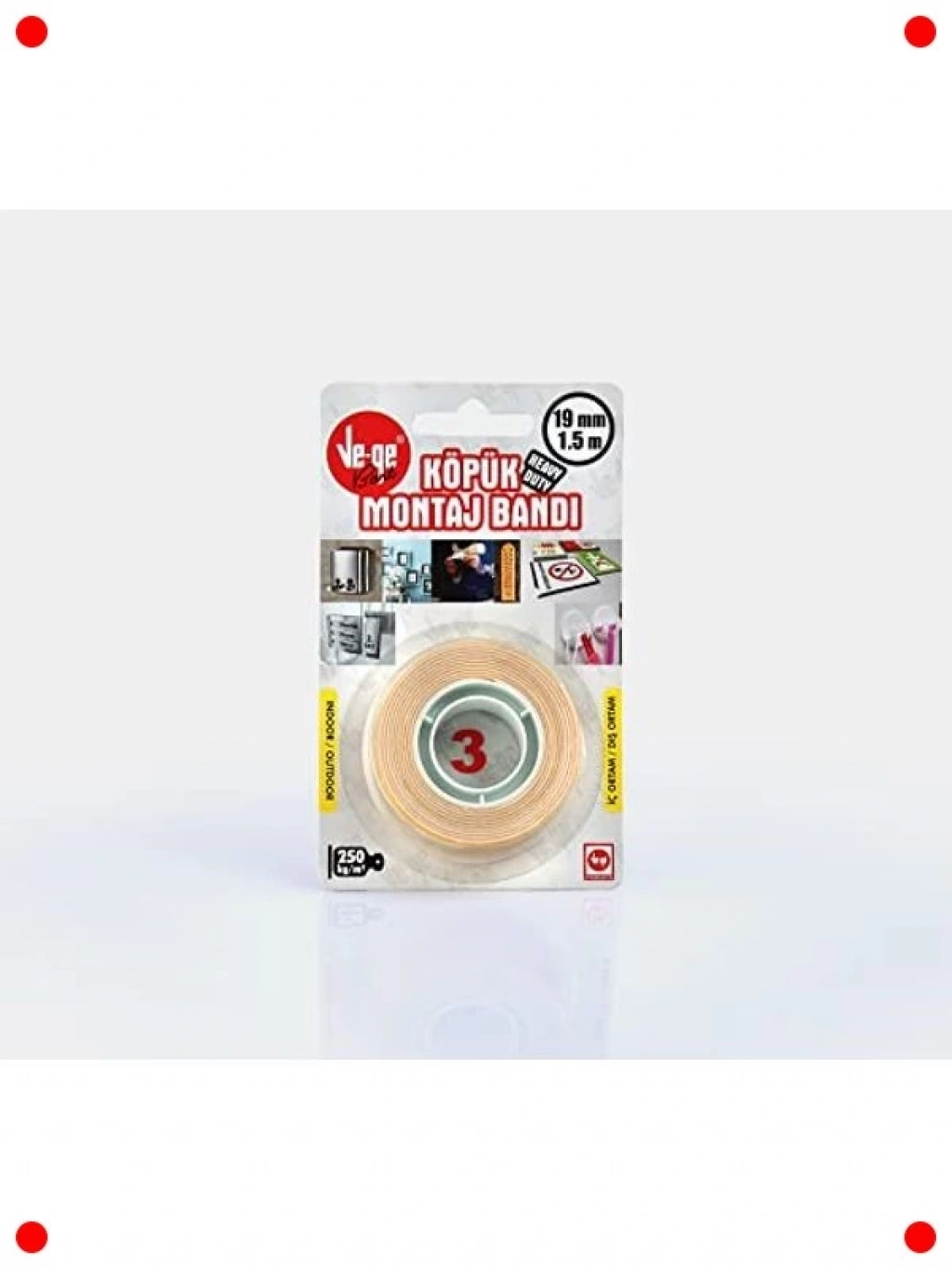 Projeniz ne kadar ağır olursa olsun, bu ağır hizmet köpük montaj bandı ile güvenle sabitleyin. 19 mm genişliğinde ve 1.5 metre uzunluğundaki bu bant, yüksek mukavemetli yapışkanlığı sayesinde ayna, tablo, raf gibi objeleri duvara zarar vermeden monte etmek için idealdir. İç ve dış mekanlarda kullanılabilir, neme ve sıcaklık değişimlerine karşı dayanıklıdır. Çivi veya vida kullanmadan hızlı ve temiz bir montaj çözümü sunar. Evde, ofiste veya atölyenizde her türlü sabitleme ihtiyacınız için pratik bir yardımcıdır.