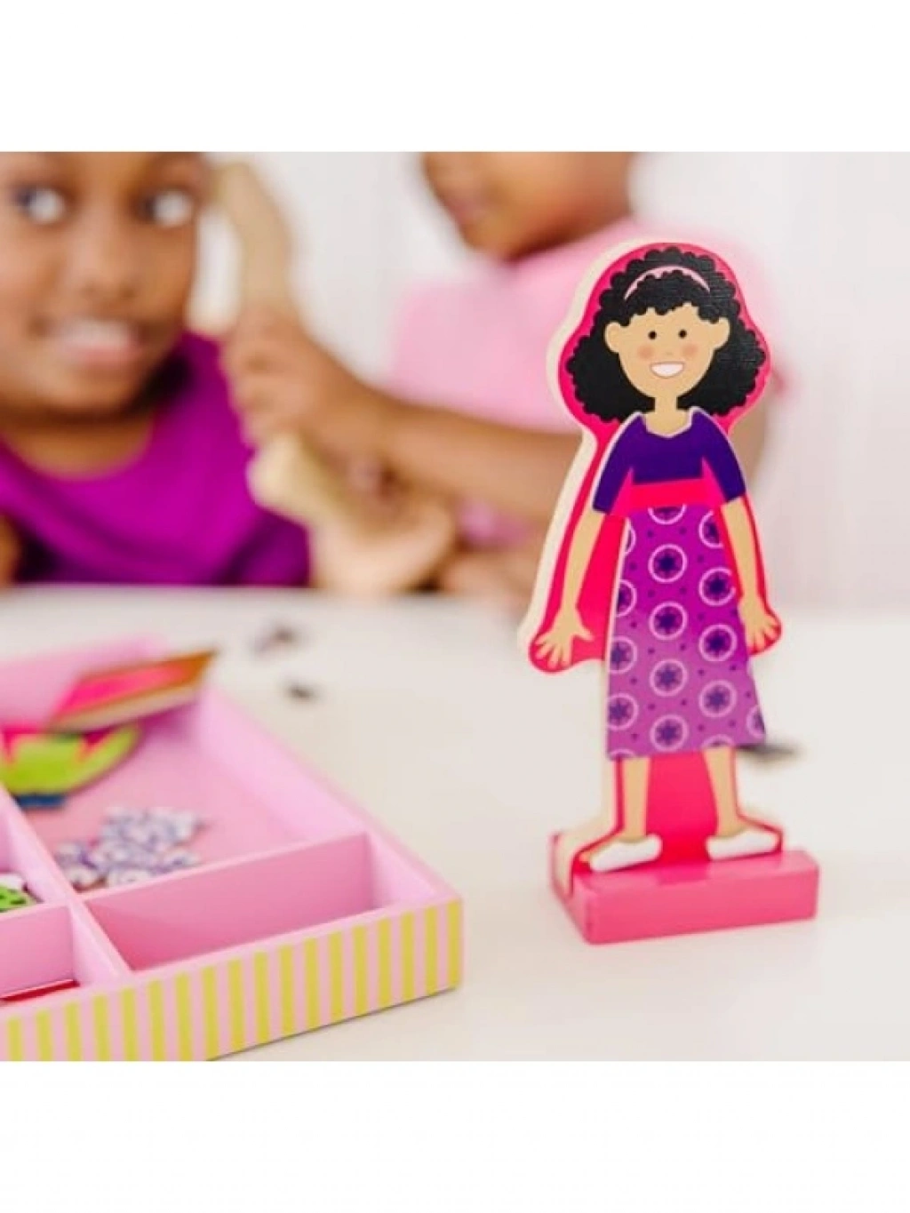 Bu eğlenceli ahşap giydirme seti, çocukların hayal gücünü ve yaratıcılığını geliştirmek için tasarlanmıştır. Set, 56 parça mıknatıslı kıyafet ve aksesuar içerir. İki ahşap figür, çocukların oyun oynarken eğlenmelerini sağlarken, ayakta durmalarını kolaylaştıran ayaklıklar da bulunmaktadır. Çocuklar, taklit oyunları oynayarak sosyal becerilerini geliştirebilir. Avrupa Birliği ve ABD oyuncak güvenlik standartlarına uygun olarak üretilmiştir, bu sayede güvenli bir oyun deneyimi sunar.