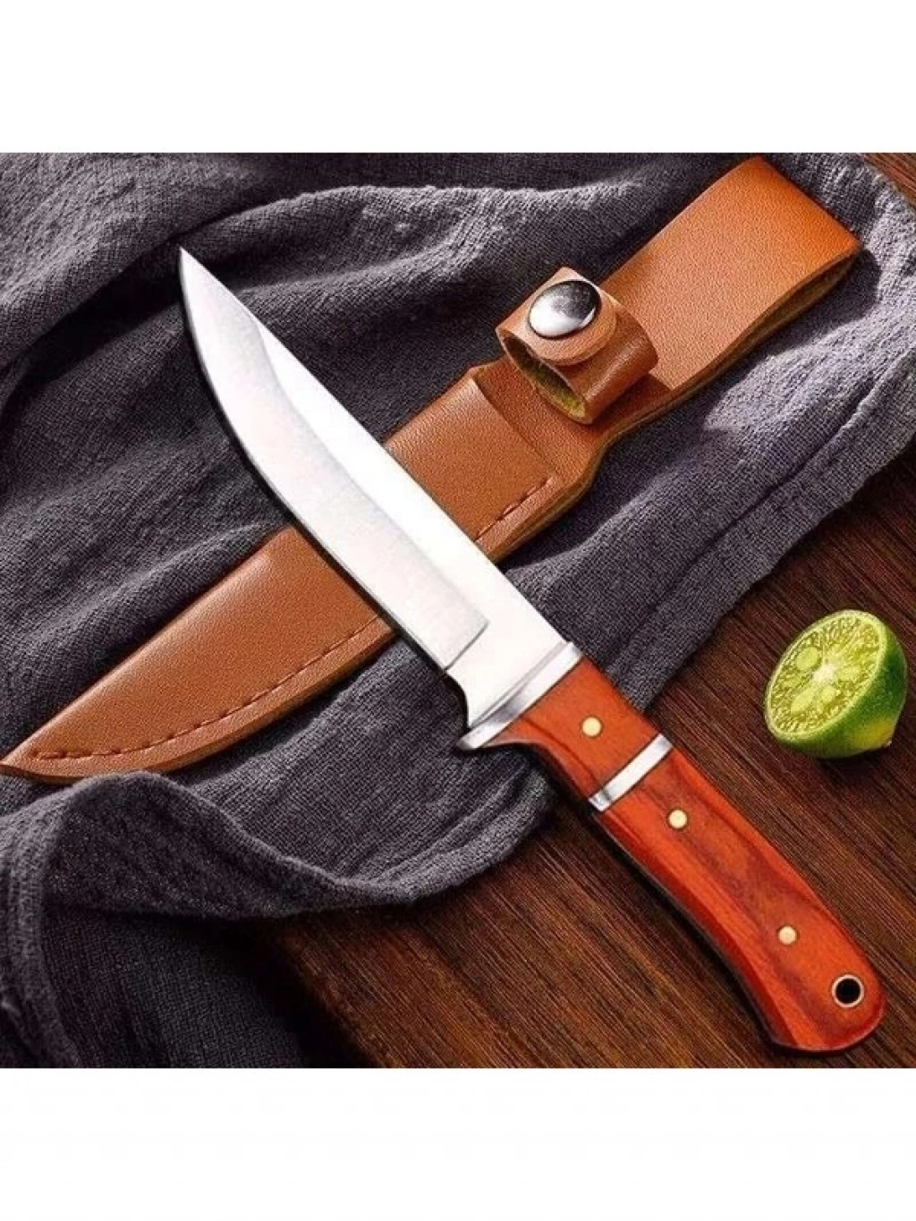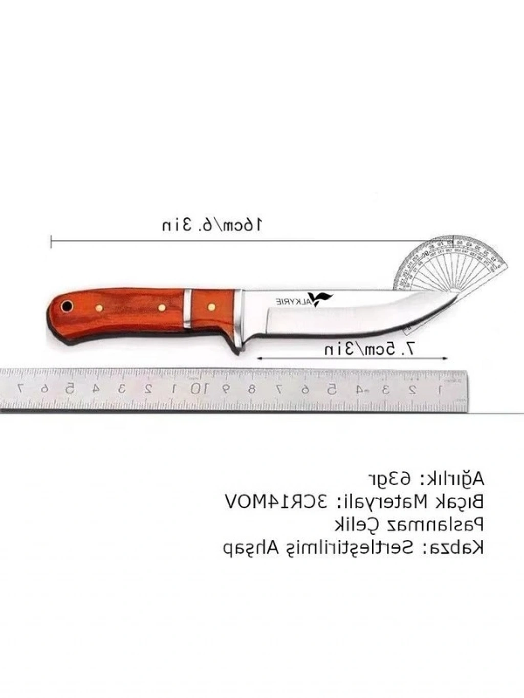 Bu av bıçağı, kırmızı ahşap sapı ve 3CR14MOV paslanmaz çeliği ile hem dayanıklıdır hem de şık bir görünüme sahiptir. Kılıfı ile taşınması ve saklanması son derece pratiktir.
