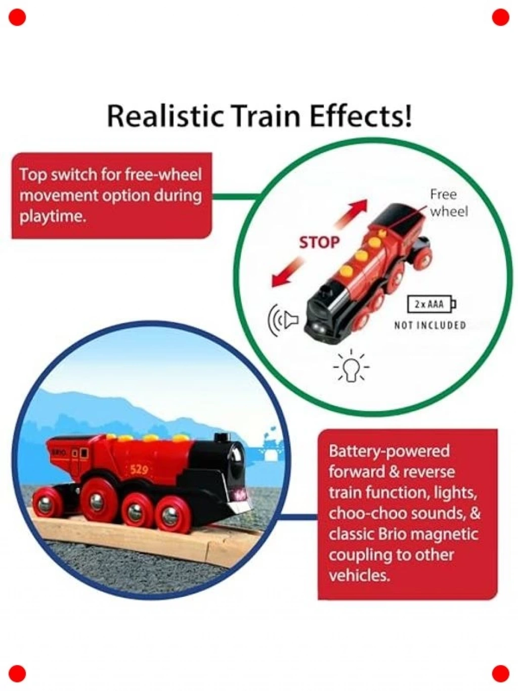 Minik tren sürücüleri için tasarlanmış bu parlak kırmızı lokomotif, ahşap tren setlerinin vazgeçilmez bir parçasıdır. Yüksek kaliteli ve sürdürülebilir ahşap malzemeden üretilmiş olup, dayanıklılığı ve çocuk sağlığına uygunluğuyla öne çıkar. Mıknatıslı bağlantı sistemi sayesinde diğer tren vagonlarına ve aksesuarlara kolayca takılabilir. Canlı rengi ve klasik tasarımıyla çocukların dikkatini çeker, hayal güçlerini harekete geçirir. Tren setleriyle oynamak, çocukların el-göz koordinasyonunu, ince motor becerilerini ve yaratıcılıklarını geliştirir. Kendi demiryolu maceralarını yaratmak isteyen çocuklar için mükemmel bir başlangıç veya mevcut koleksiyonlarına harika bir ek. Bu lokomotif ile macera dolu tren yolculukları sizi bekliyor.
