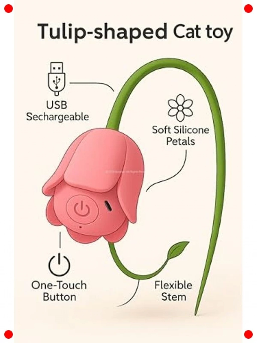 Kedinizin oyun saatlerine yenilikçi bir boyut katacak bu akıllı, interaktif lale şekilli oyuncak, evcil hayvanınızın eğlenirken egzersiz yapmasını sağlar. USB şarj edilebilir özelliği sayesinde pil derdini ortadan kaldırır. Otomatik hareket sensörleri ile kendi kendine hareket eder, kedinizin avlanma içgüdüsünü tetikler ve onu sürekli meşgul eder. Silikon saplı tasarımı, hem dayanıklılık hem de güvenli bir oyun deneyimi sunar. Kedinizin zihinsel ve fiziksel sağlığını desteklerken, yalnız kaldığında bile sıkılmasını önler. Eğlenceli ve sağlıklı bir yaşam için harika bir tercihtir.