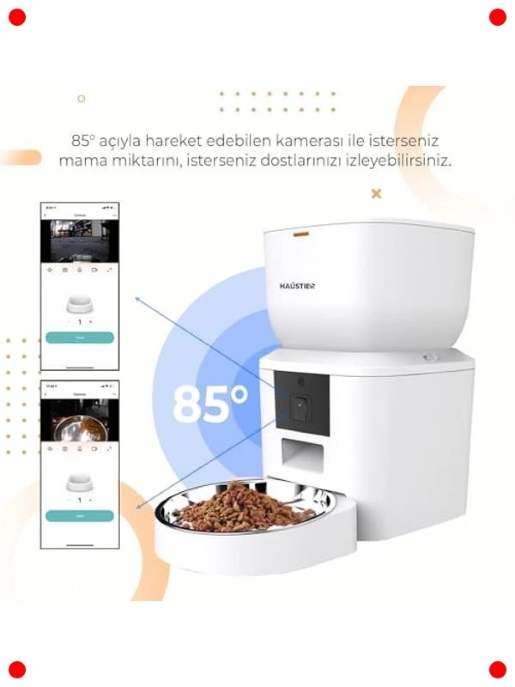 Kedinizin beslenmesini uzaktan yönetmenizi sağlayan bu akıllı kameralı otomatik mama kabı ile artık evde olmasanız bile patili dostunuzun beslenme düzenini kontrol altında tutabilirsiniz. 4 litrelik geniş mama haznesi sayesinde uzun süreli besleme imkanı sunar. Ayarlanabilir 480P kamera ile kedinizin beslenme anlarını canlı olarak izleyebilir veya kaydedebilirsiniz. Akıllı telefon uygulamasından (Wi-Fi bağlantılı) mama porsiyonlarını ve zamanlamalarını kolayca ayarlayabilirsiniz. Dahili mikrofon ve hoparlör sayesinde sesinizi kaydedip çalabilir, böylece kediniz kendini yalnız hissetmez. Bu cihaz, yoğun yaşam tarzına sahip evcil hayvan sahipleri için hem kolaylık hem de iç huzuru sağlar.