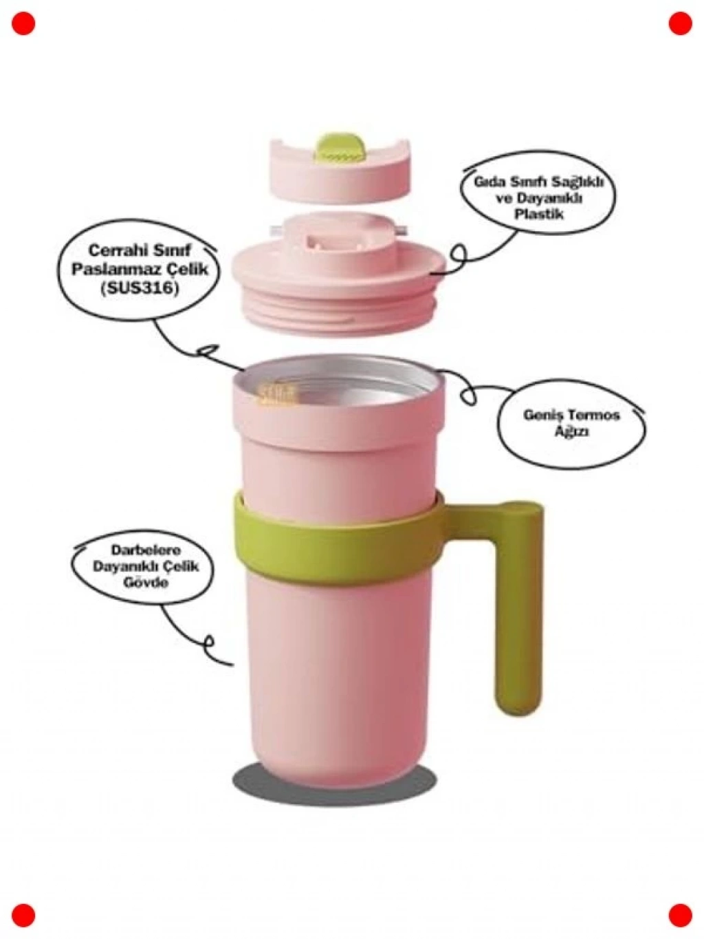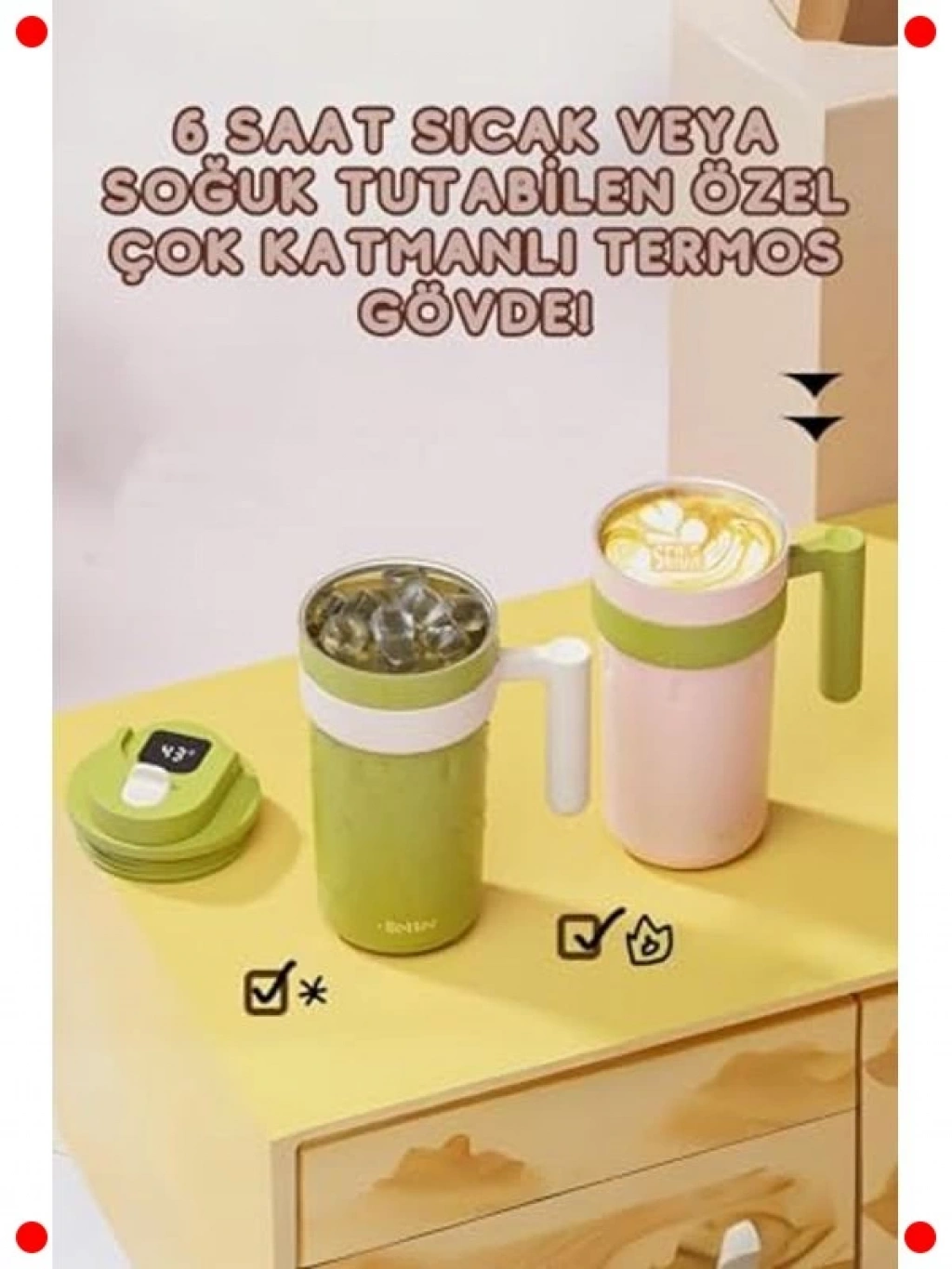 İçeceklerinizi gün boyu ideal sıcaklıkta tutmak için tasarlanmış bu 600 ml paslanmaz çelik termos mug, akıllı LED sıcaklık göstergesi ile donatılmıştır. Dokunmatik ekranı sayesinde içeceğinizin anlık sıcaklığını kolayca kontrol edebilir, yanma riskini ortadan kaldırabilirsiniz. Çift katmanlı paslanmaz çelik yapısı, hem sıcak hem de soğuk içecekler için mükemmel izolasyon sağlar. Sızdırmaz kapak tasarımı, çantanızda veya araçta taşırken dökülme endişesini ortadan kaldırır. Şık tasarımı ve rahat içim özelliği ile günlük kullanım, ofis veya seyahatler için ideal bir tercihtir.