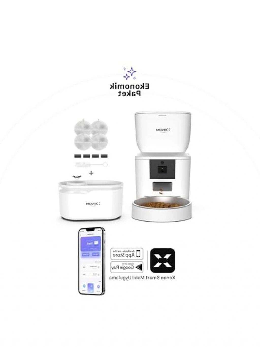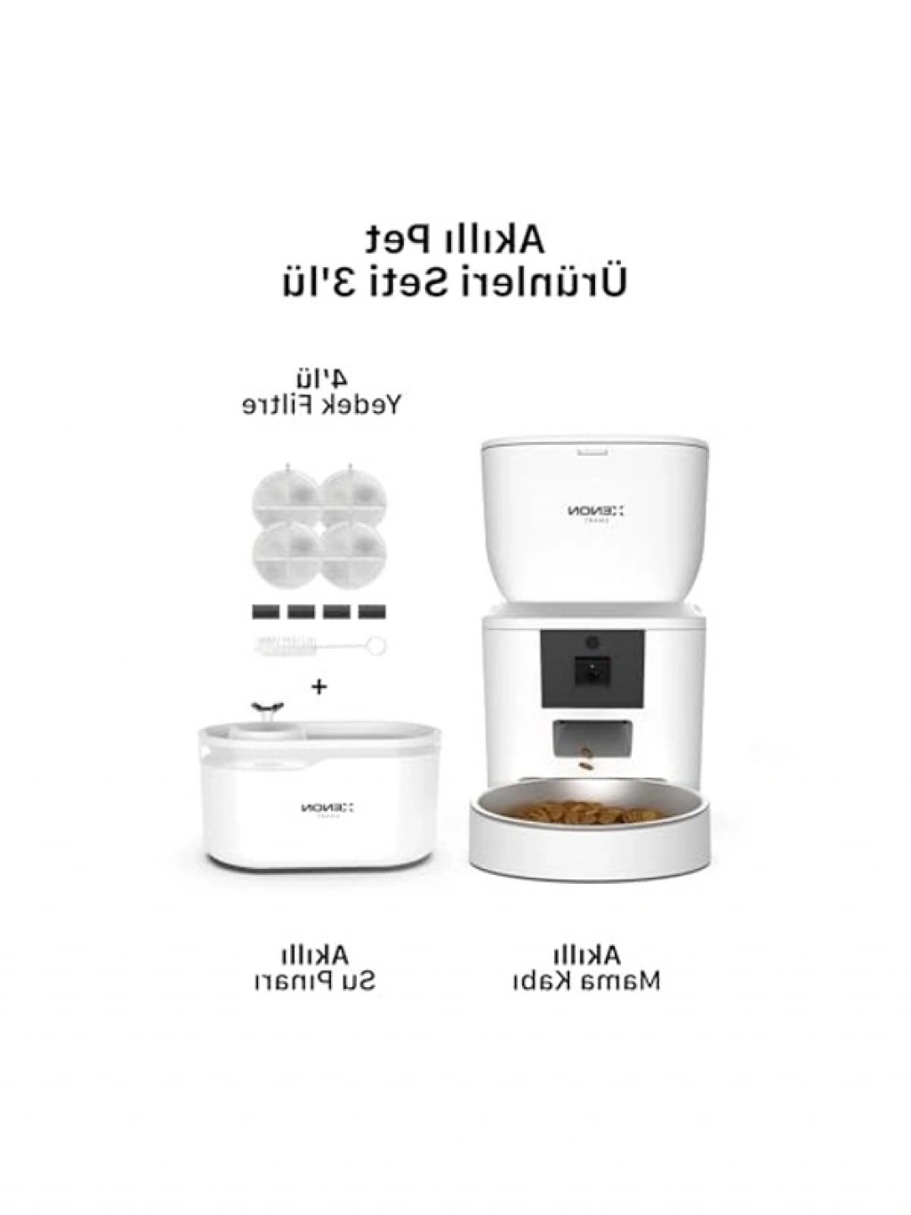 Üç parçadan oluşan bu akıllı mama kabı ve su pınarı seti, evcil hayvanınızın beslenmesini mobil uygulama ile kontrol etmenizi sağlar. Paslanmaz çelikten üretilmiş besleme kaseleri, programlanabilir özellikleri sayesinde kedinizin veya köpeğinizin ihtiyaçlarına göre ayarlanabilir.