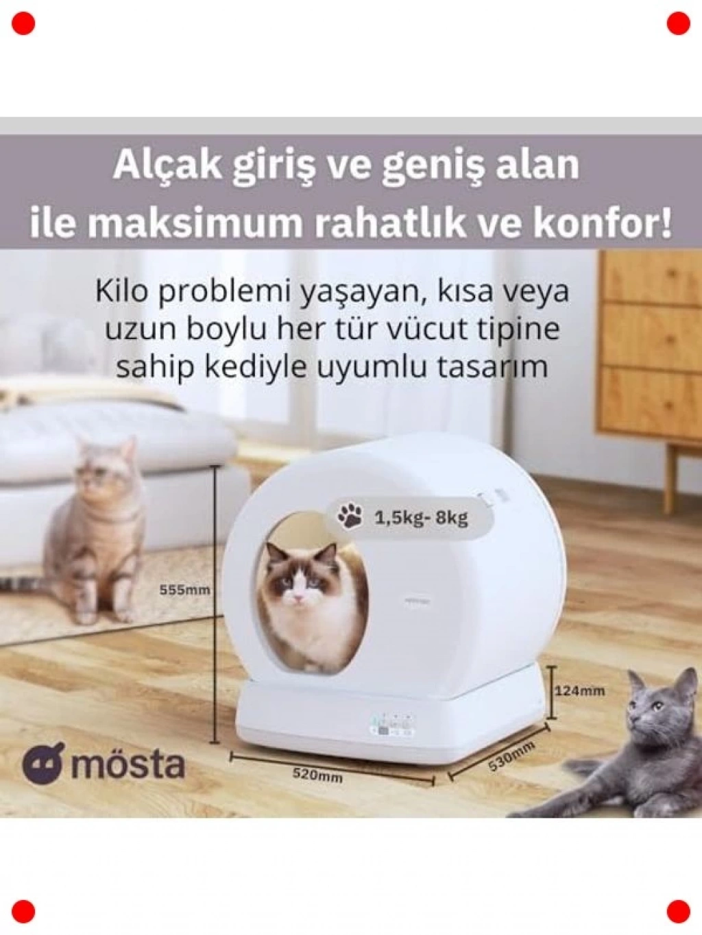 Kedinizin tuvalet deneyimini baştan aşağı değiştirecek bu akıllı otomatik kedi tuvaleti ile tanışın. Entegre HD kamerası sayesinde evcil dostunuzun tuvalet alışkanlıklarını takip edebilir, mobil uygulama üzerinden dünyanın her yerinden kontrol edebilirsiniz. Otomatik temizleme özelliği, sizi kürek derdinden kurtarırken, akıllı sensörleri kedinizin tuvaleti kullandığını algılar ve temizliği başlatır. Geniş iç hacmi, kedinize rahat bir kullanım alanı sunarken, sessiz çalışma özelliği onu ürkütmez. Koku giderici hediyesiyle evinizde her zaman taze ve temiz bir hava sağlar. Hijyen ve teknolojiyi bir araya getiren bu ürünle hayatınızı kolaylaştırın.