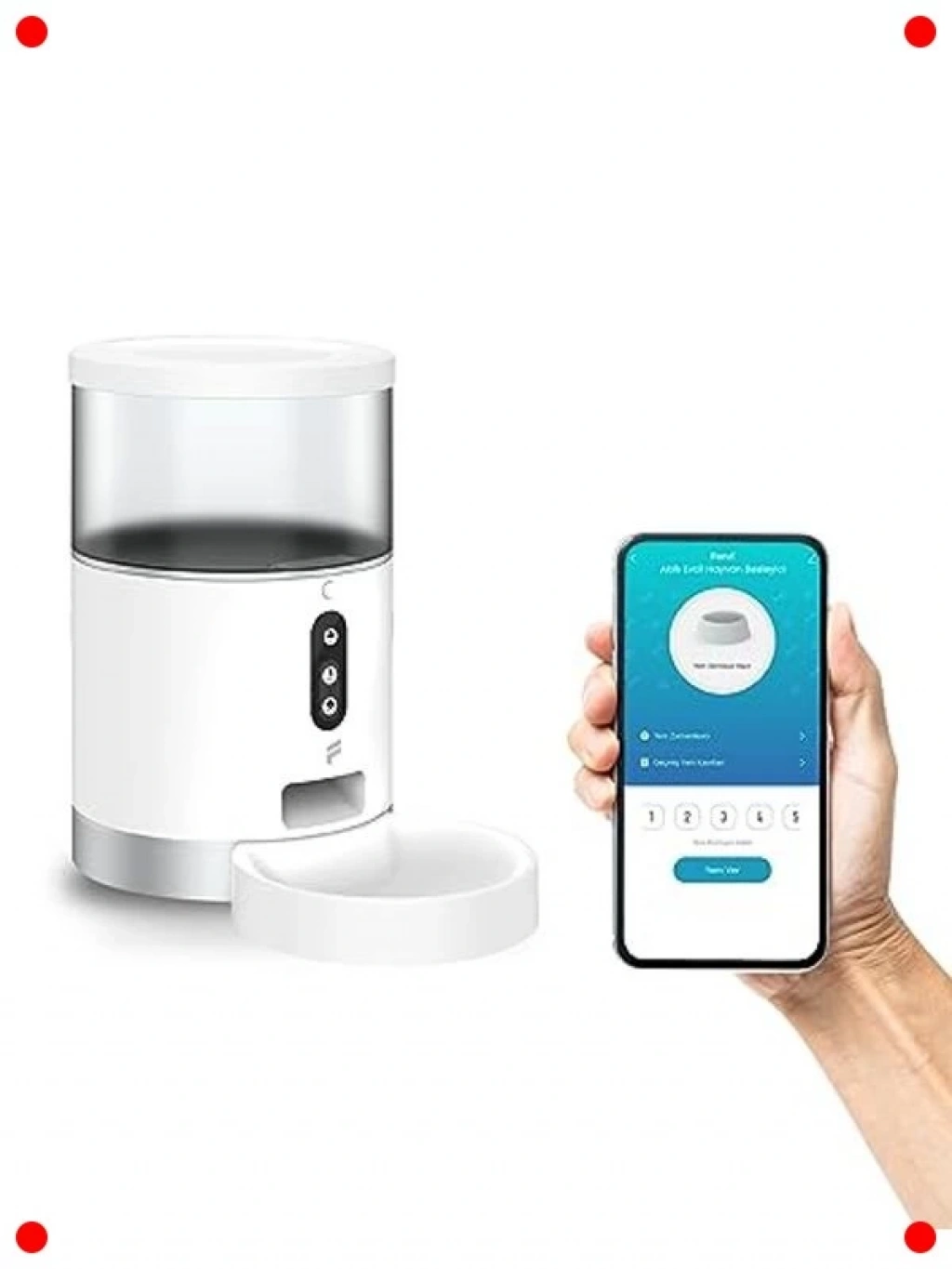 Evcil hayvanınızın beslenme rutinini kolaylaştıran bu akıllı otomatik mama kabı ile patili dostunuzun yemek saatlerini ve porsiyonlarını uzaktan kontrol edebilirsiniz. Wi-Fi bağlantısı sayesinde cep telefonunuzdan kolayca programlayabilir, 4 litrelik geniş haznesi ile uzun süreli mama ihtiyacını karşılayabilirsiniz. Porsiyon ayarı özelliği sayesinde evcil hayvanınızın sağlıklı kilosunu korumasına yardımcı olur. Seyahat ederken veya işteyken bile dostunuzun düzenli beslendiğinden emin olmanın huzurunu yaşayın. Modern ve şık tasarımı, evinizin dekoruna uyum sağlar.