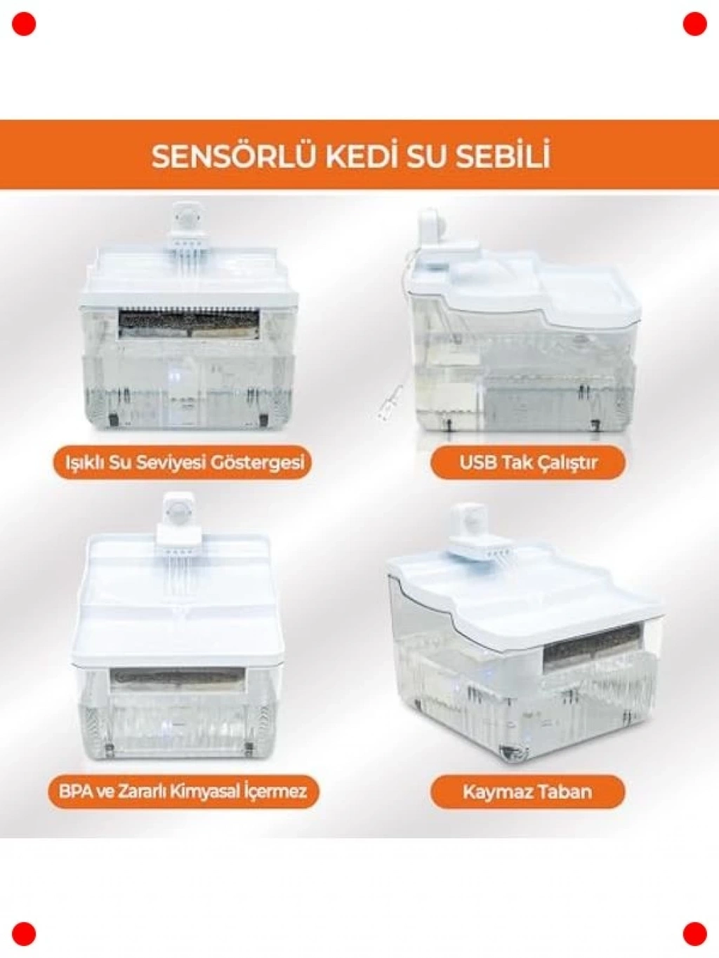 Evcil dostlarınızın her zaman taze ve temiz suya erişmesini sağlayan bu akıllı sensörlü su sebili ile onların sağlığını destekleyin. Hareket sensörü sayesinde evcil hayvanınız yaklaştığında suyu otomatik olarak akıtarak ilgilerini çeker ve su tüketimini teşvik eder. Ultra sessiz çalışma özelliği, evinizde hiçbir rahatsızlık yaratmaz. Çok katmanlı filtre sistemi, suyu sürekli olarak temizler, klor ve kirleticileri giderir. Şık beyaz tasarımı ve yedek filtre hediyesiyle hem fonksiyonel hem de estetik bir çözümdür. Kolayca temizlenebilir yapısıyla hijyenik bir kullanım sunar.
