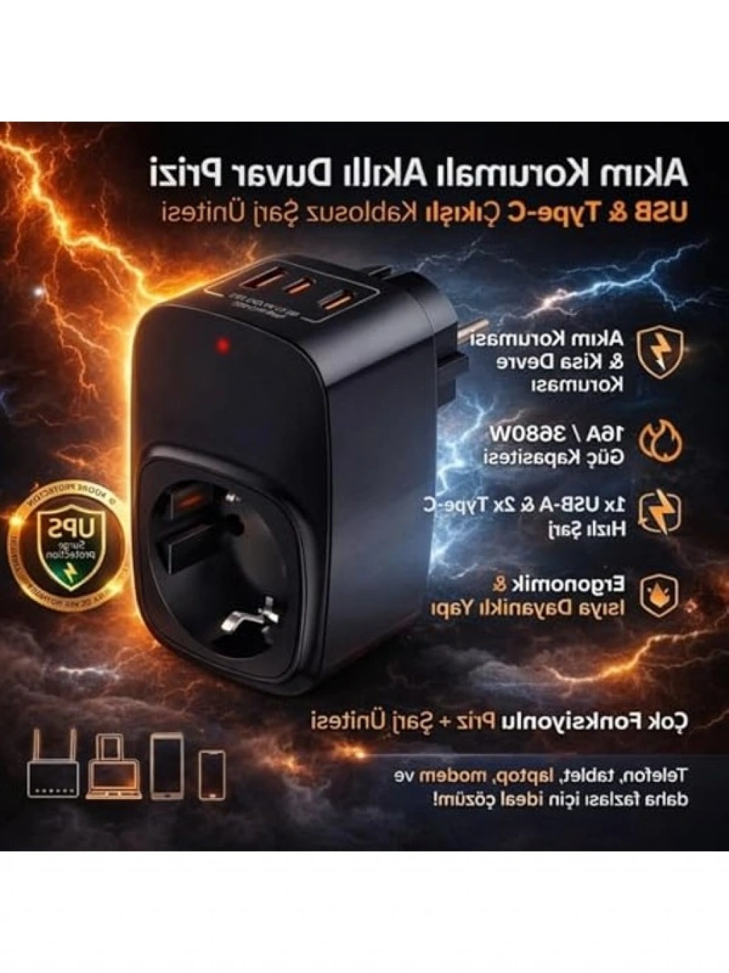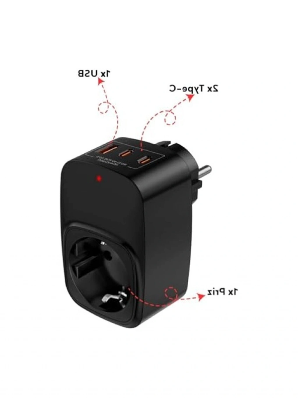 Akım korumalı tekli duvar prizi, 3680W maksimum güç kapasitesine sahiptir. 16A akım koruma değeri ile birlikte 1 adet AC priz ve 2 USB-A portu, 1 USB-C portu bulundurmaktadır. 220V – 240V voltaj uyumluluğu ile güvenli bir kullanım sağlar, ayrıca aşırı akım ve kısa devre koruması ile bağlı cihazlarınızı korur.