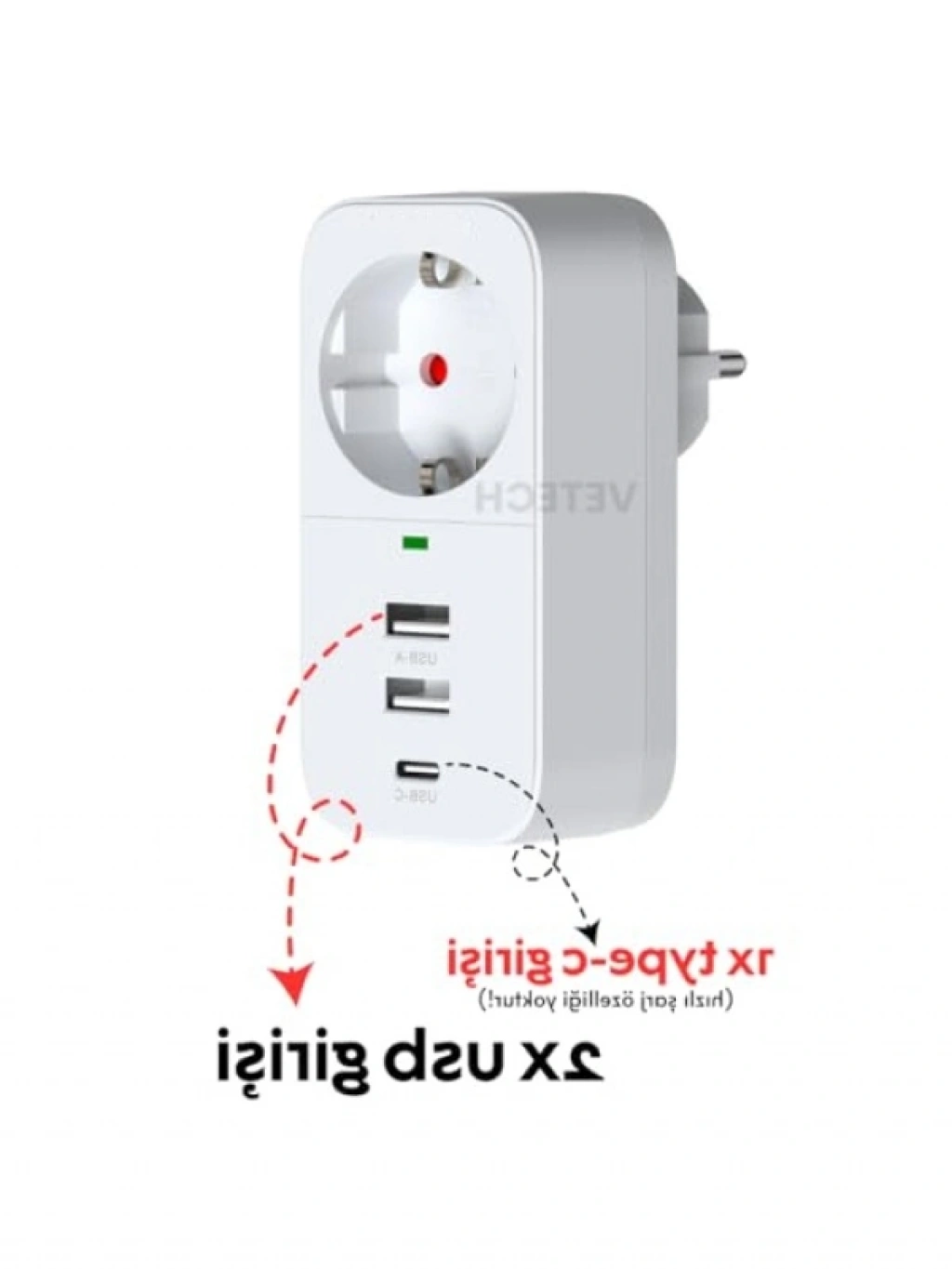 Bu prizin özelliği, 2 adet USB-A ve 1 adet USB-C girişi ile birden fazla cihazı aynı anda şarj edebilme imkanı sunmasıdır. Akım koruma teknolojisi, cihazlarınızı voltaj dalgalanmalarına ve aşırı yüklenmelere karşı korur. 220-240V voltaj aralığında çalışarak Türkiye'deki elektrik sistemleriyle uyumludur. Kompakt yapısı sayesinde minimum yer kaplar ve pratik bir kullanım sağlar.