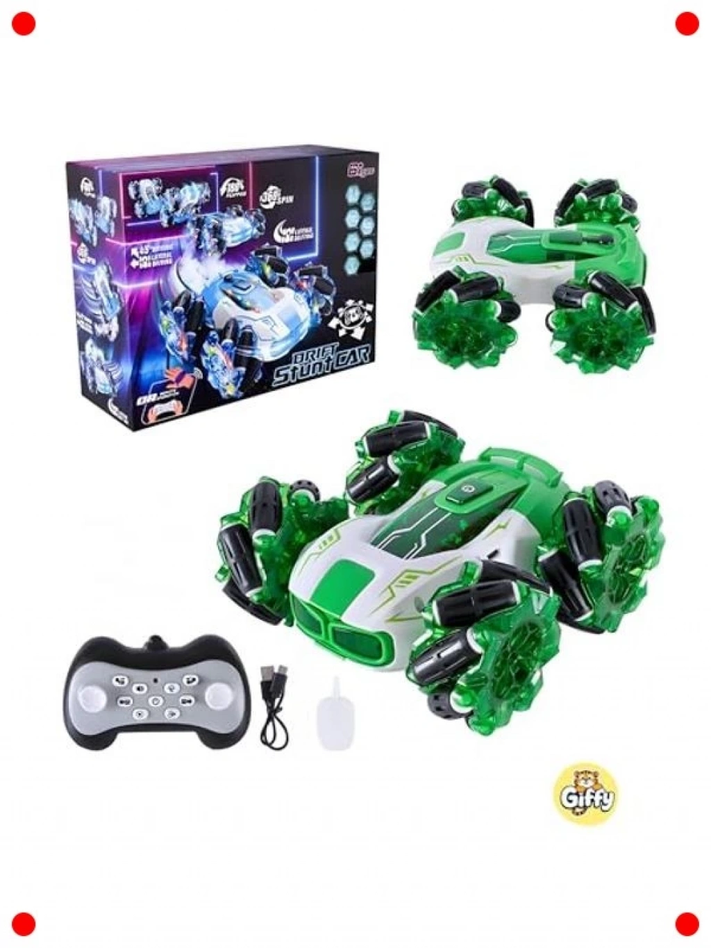 Çocukları büyüleyecek, sıra dışı bir uzaktan kumandalı araba deneyimi! Bu akrobat 4x4 araç, sadece engelleri aşmakla kalmaz, aynı zamanda buhar ve ışık efektleriyle gerçekçi bir şov sunar. Tam fonksiyonlu uzaktan kumandası sayesinde ileri/geri, sağa/sola dönüş ve 360 derece akrobatik hareketler kolayca yapılabilir. Dahili Type-C şarj özelliği ile pil derdine son verir, daha uzun süreli oyun keyfi sağlar. Yeşil rengi ve dayanıklı yapısıyla iç ve dış mekanlarda saatlerce süren eğlence vaat eder. Çocukların motor becerilerini ve el-göz koordinasyonunu geliştirir.