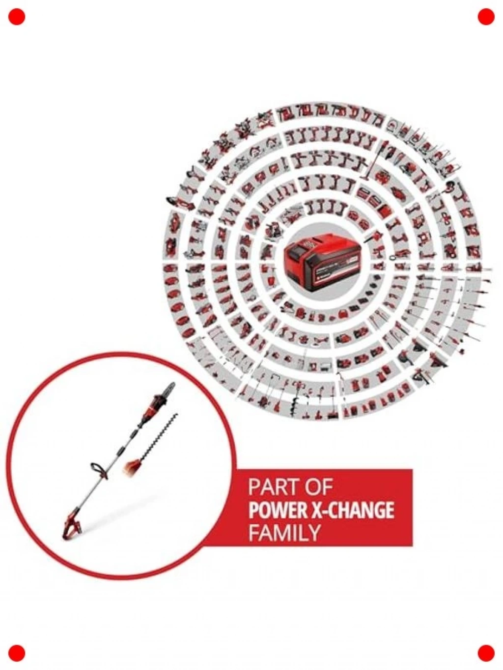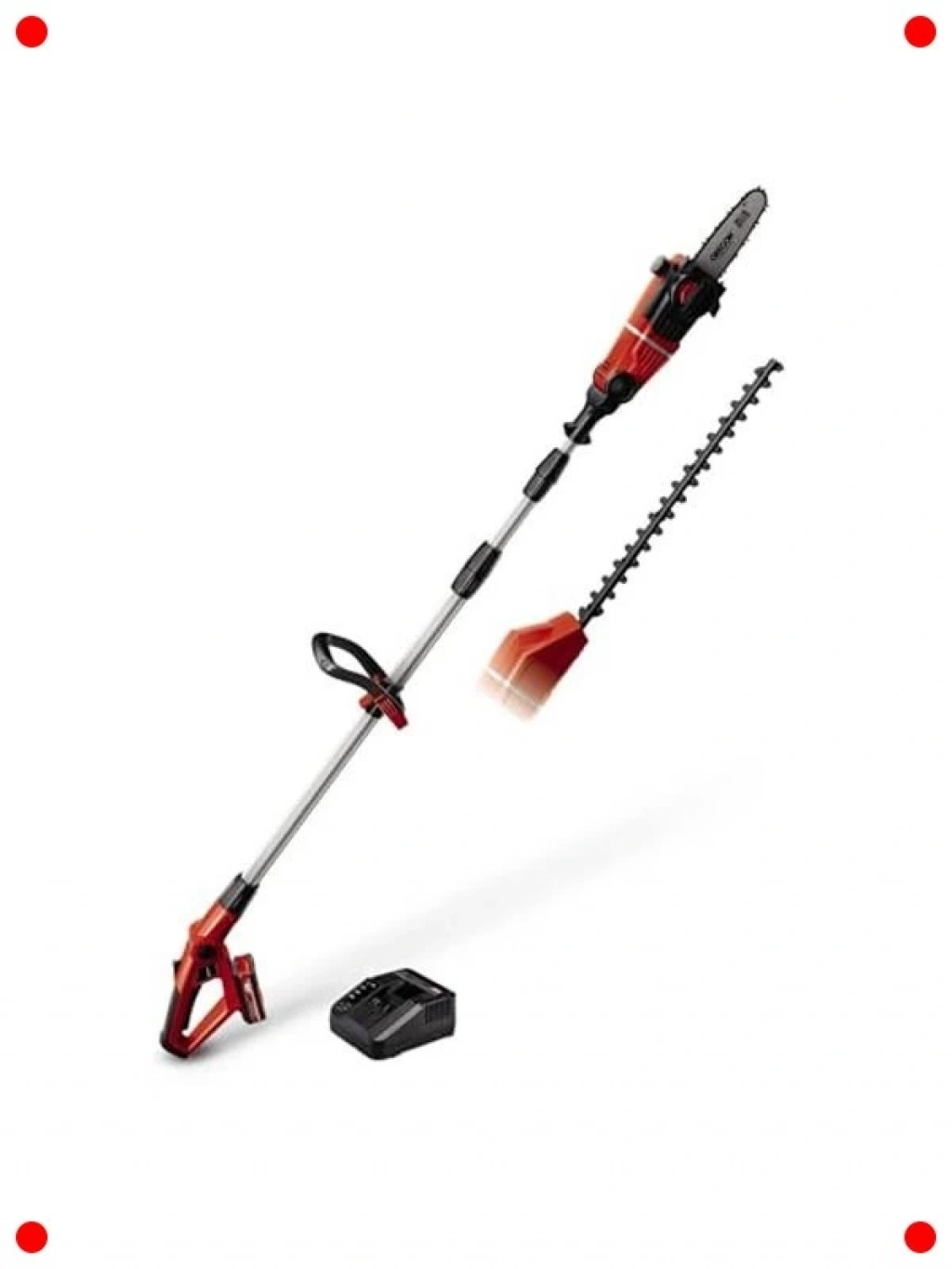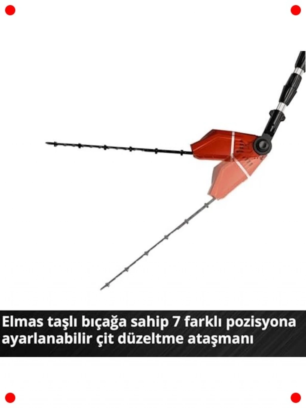 Bahçe bakım işlerinizi kökten değiştirecek bu akülü çok fonksiyonlu budama seti, hem çit budama makinesi hem de motorlu testere olarak kullanılabilen 2'si 1 arada pratik bir çözümdür. 18V gücü ve 3Ah kapasiteli lityum-iyon aküsü sayesinde kablosuz özgürlüğün tadını çıkarırken uzun süreli çalışma imkanı sunar. Yüksek dallara veya çitlere kolayca erişmenizi sağlayan uzun sapı, ergonomik tasarımıyla yorulmadan çalışmanıza olanak tanır. Birlikte gelen akü ve şarj cihazı ile hemen kullanıma başlayabilirsiniz. Bahçenizdeki budama ve kesme işlerini hızlı, güvenli ve zahmetsiz hale getirin.
