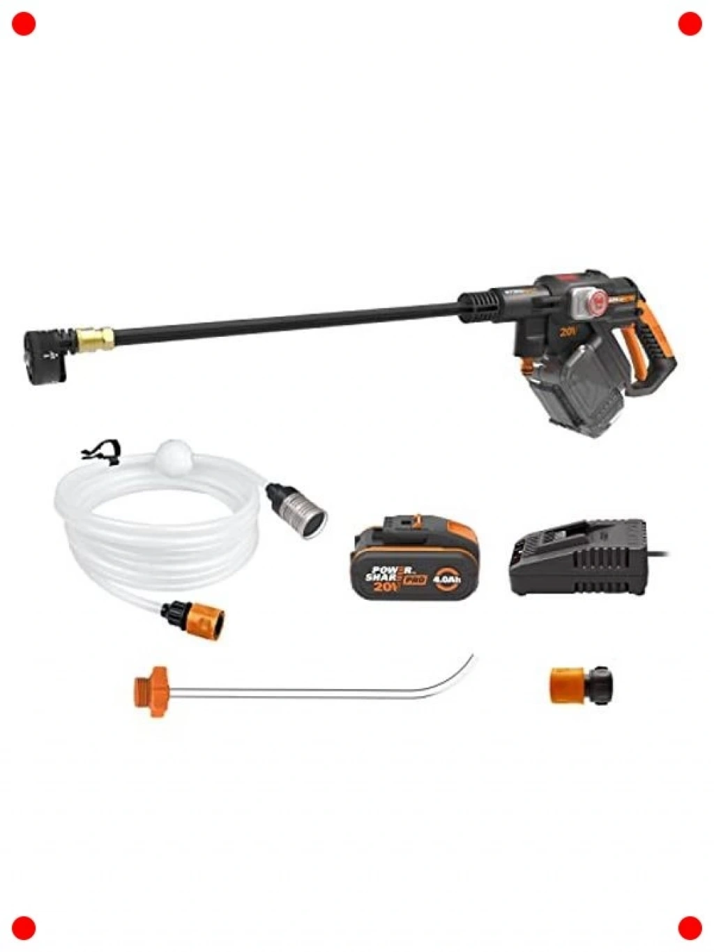 Kablo karmaşasından kurtularak maksimum hareket özgürlüğü sunan bu akülü basınçlı yıkama tabancası, güçlü 56 Bar basıncı ile etkili temizlik sağlar. Kömürsüz motor teknolojisi sayesinde daha uzun ömürlü, daha verimli ve daha sessiz bir çalışma deneyimi sunar. Araba, bisiklet, bahçe mobilyaları, teras ve garaj gibi birçok yüzeyde kir ve lekeleri kolayca temizlemek için idealdir. Hafif ve kompakt tasarımı sayesinde tek elle bile rahatça kullanılabilir. Ürünle birlikte gelen 2 parçalı yıkama seti, farklı temizlik ihtiyaçlarınıza uygun çözümler sunar. Su kaynağına bağlı kalmadan her yerde temizlik yapabilme özgürlüğünü yaşayın.
