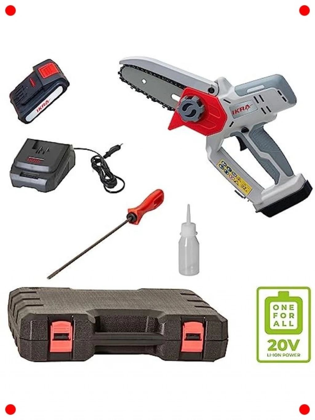 Bahçe işlerinizi kolaylaştıracak bu güçlü akülü budama testeresi ile ağaç ve çalı budama işlemleri artık çok daha pratik. 20V yüksek performanslı motoru sayesinde kalın dalları bile zahmetsizce keser. Set içerisinde bulunan iki adet 2.0 Ah batarya, uzun süreli kesintisiz çalışma imkanı sunarak işlerinizi yarıda bırakmaz. Kablosuz yapısı sayesinde bahçenizin her köşesine rahatça ulaşabilir, hareket özgürlüğünün tadını çıkarabilirsiniz. Ergonomik tasarımı hafif ve dengeli bir kullanım sağlarken, güvenlik önlemleriyle de içiniz rahat eder. Her bahçıvanın sahip olması gereken, verimli ve güvenilir bir yardımcı.