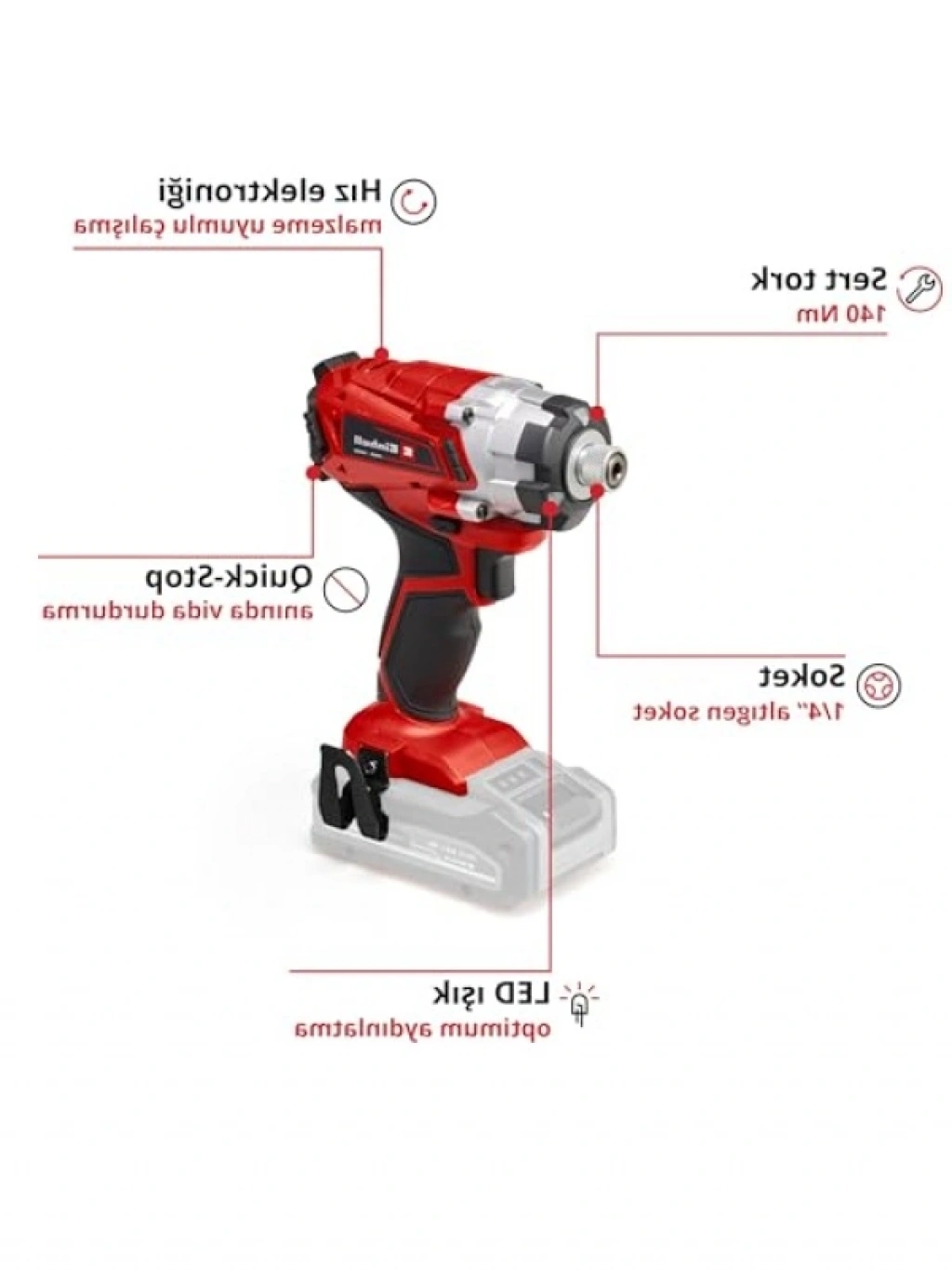 Bu akülü darbeli vidalama, hem yüksek güç gerektiren işler için hem de hassas vidalama işlemleri için mükemmel bir tercihtir. Ergonomik tasarımı ve düşük geri tepme özelliği ile kullanımı son derece konforludur. 140 Nm maksimum sert torku sayesinde zorlu işler için idealdir. Hassas devir kontrolü ile ince ayar yapmanızı sağlar. Üç güçlü LED ışık, çalışma alanını aydınlatırken, alüminyum gövdesi dayanıklılığı artırır. Pratik kullanım için kemer klipsi de mevcuttur.