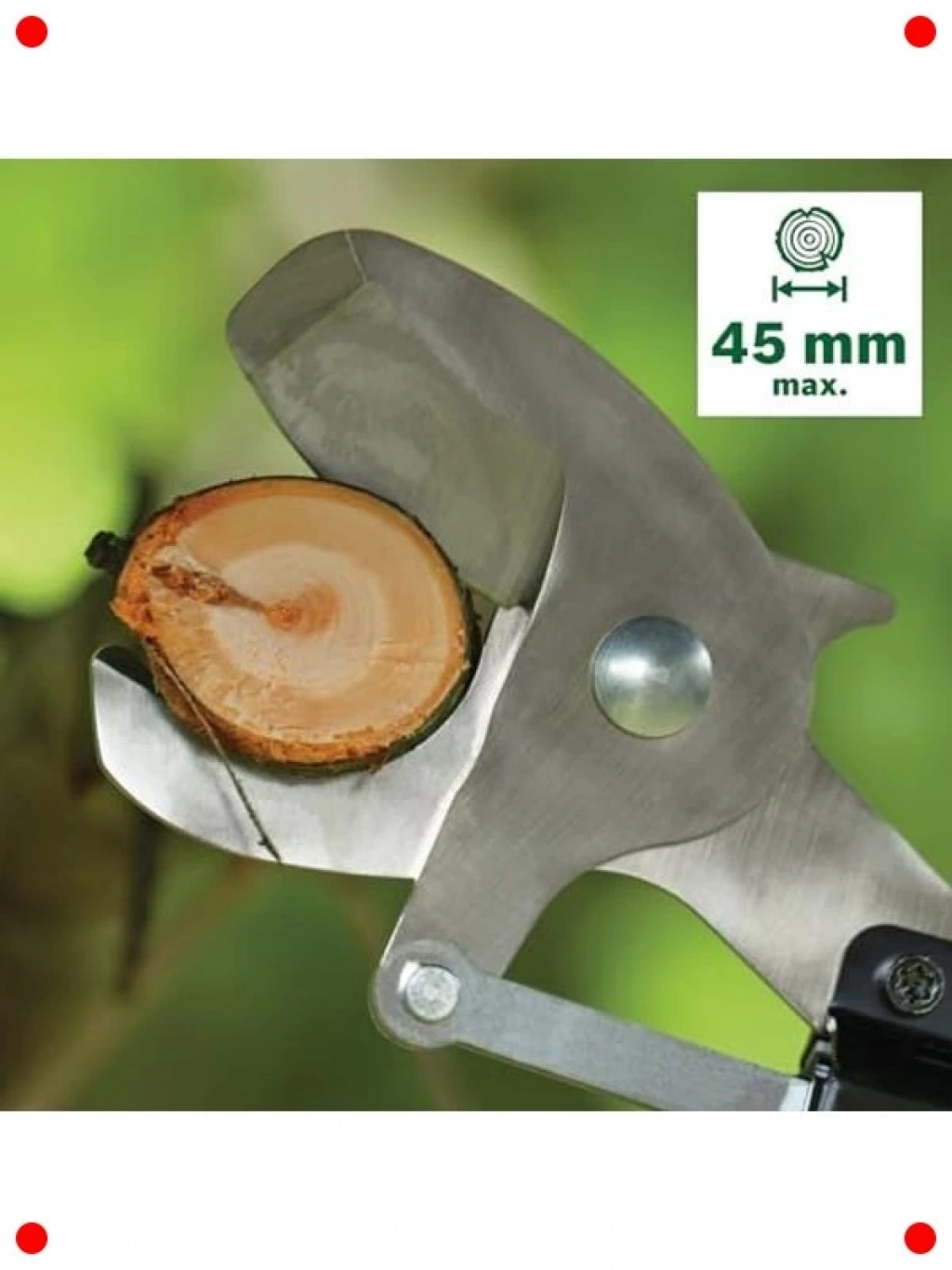 Bahçe işlerinizi zahmetsiz hale getiren bu akülü budama makası ile kablo kısıtlaması olmadan özgürce çalışın. 18V güç sistemi sayesinde güçlü kesim performansı sunarak dalları kolayca budamanızı sağlar. Hafif ve ergonomik tasarımı, uzun süreli kullanımlarda bile yorgunluğu minimize eder. Gürültüsüz ve titreşimsiz çalışması, keyifli bir bahçe deneyimi sunar. Çiçeklerden çalılara, ince dallardan daha kalınlara kadar çeşitli bitki budama işleri için idealdir. Bahçenizin her köşesine ulaşım kolaylığı ile keskin ve temiz budamalar yaparak bitkilerinizin sağlıklı büyümesini destekler.