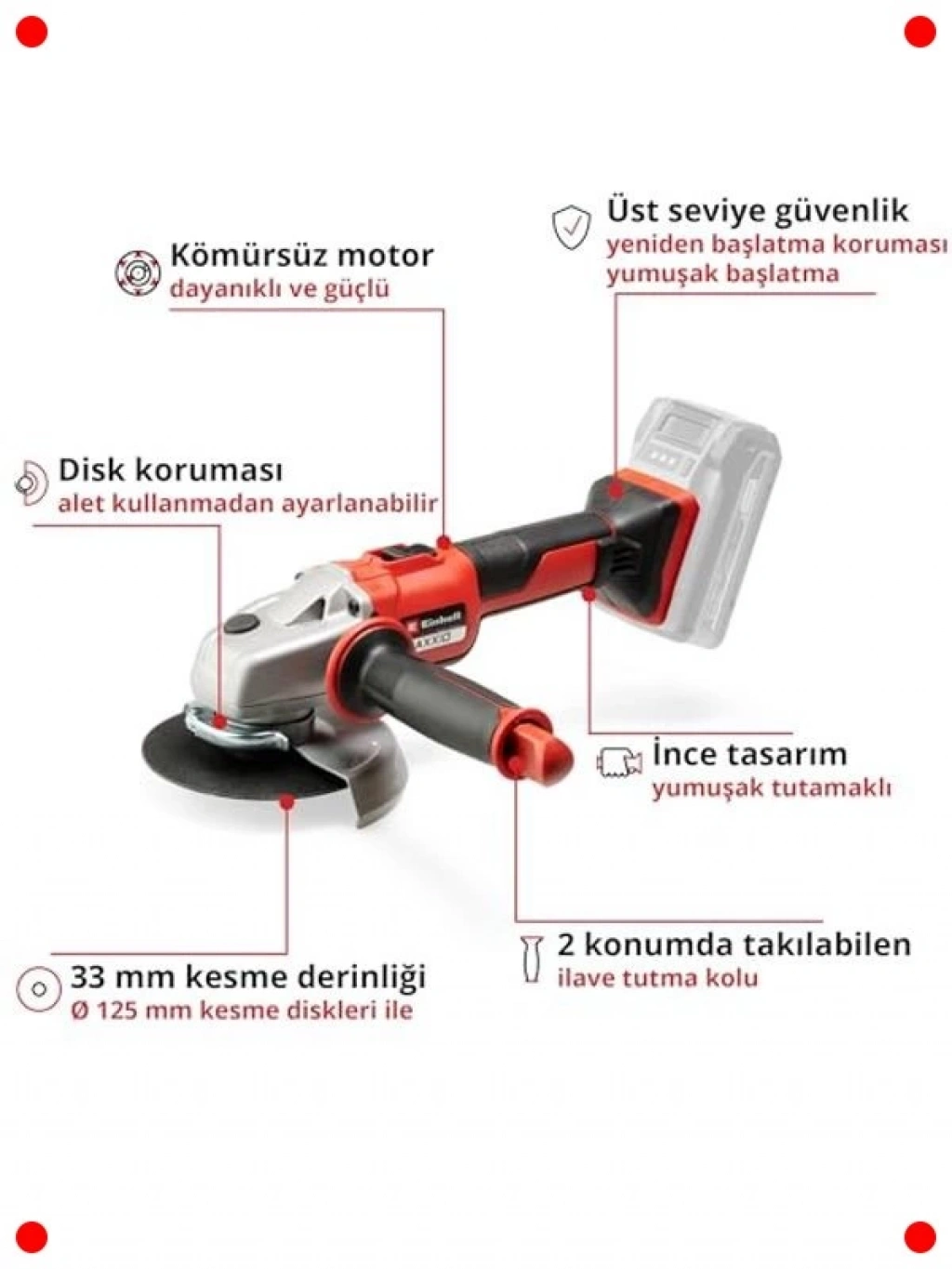 Bu güçlü akülü avuç taşlama makinesi, kablosuz özgürlük ve yüksek performans sunar. Kompakt ve hafif tasarımı sayesinde dar alanlarda bile kolayca manevra yapabilir, tek elle rahat kullanım imkanı sağlar. Metal işleme, kesme, taşlama ve çapak alma gibi çeşitli uygulamalar için idealdir, bu da onu atölyenizde çok yönlü bir yardımcı yapar. Dayanıklı yapısı uzun ömürlü kullanım sağlarken, ergonomik tutuşu ve düşük titreşim özelliği yorgunluğu azaltır. Kullanıcı güvenliği ön planda tutularak tasarlanmış bu alet, hem profesyoneller hem de amatörler için vazgeçilmez bir yardımcıdır. Akü ve şarj cihazı ayrıca satın alınmalıdır.