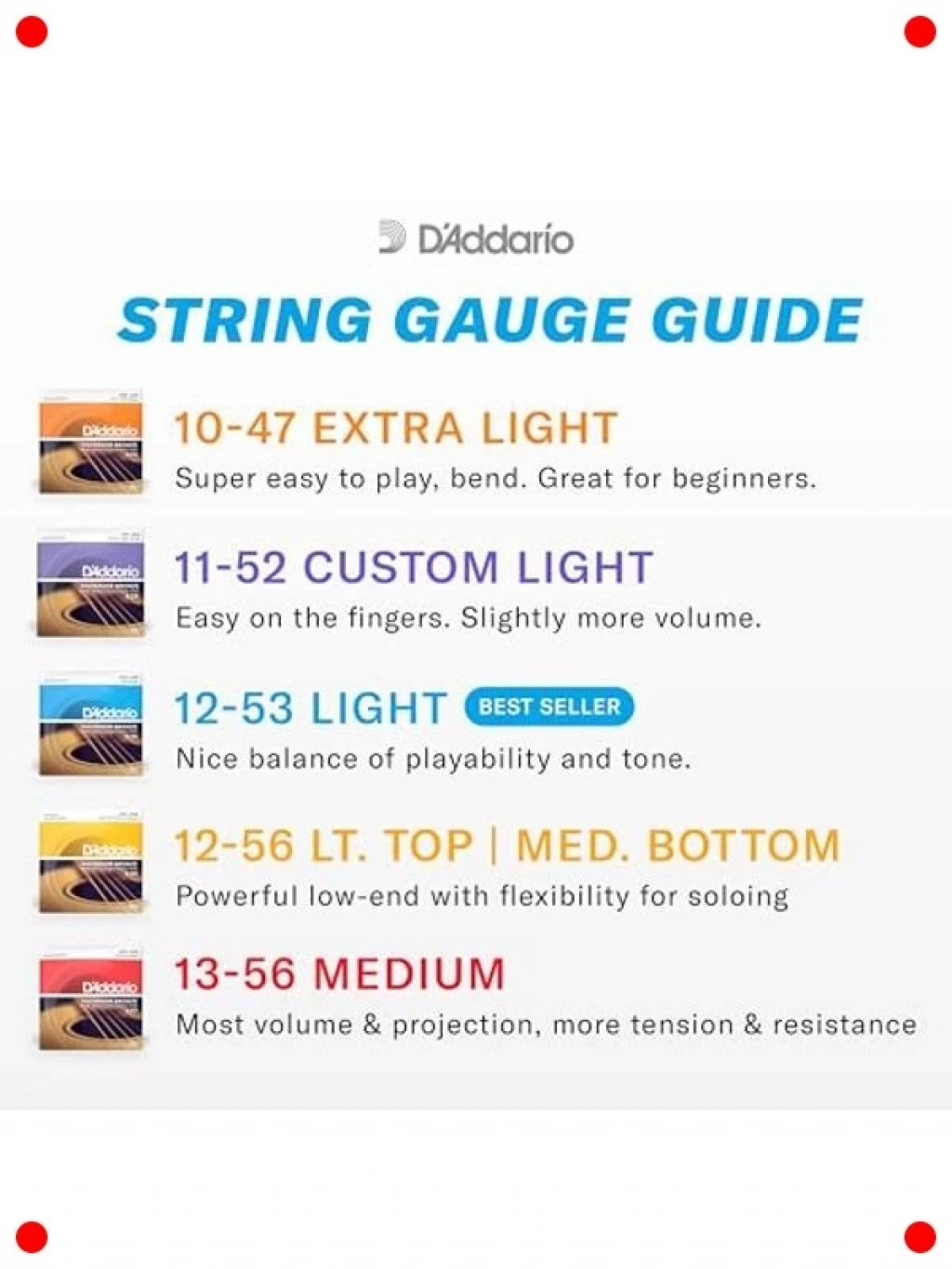 Akustik gitarınız için parlak, dengeli bir ton ve rahat bir çalım deneyimi sunan bu hafif tel setleri, sık tel değiştiren gitaristler için idealdir. .012-.053 ölçüleri, hem kolay basılabilirlik hem de zengin bir ses hacmi sağlayarak her seviyeden çalıcı için uygundur. Yüksek kaliteli malzemelerden üretilen bu teller, uzun ömürlüdür ve stabil akort tutuşu sunar, böylece performanslarınızda her zaman güvenilir bir ses elde edersiniz. Beş adetlik ekonomik paketi sayesinde, her zaman yedek tel bulundurabilir ve gitarınızın tonunu taze tutabilirsiniz. Her akustik gitarist için pratik bir seçimdir.