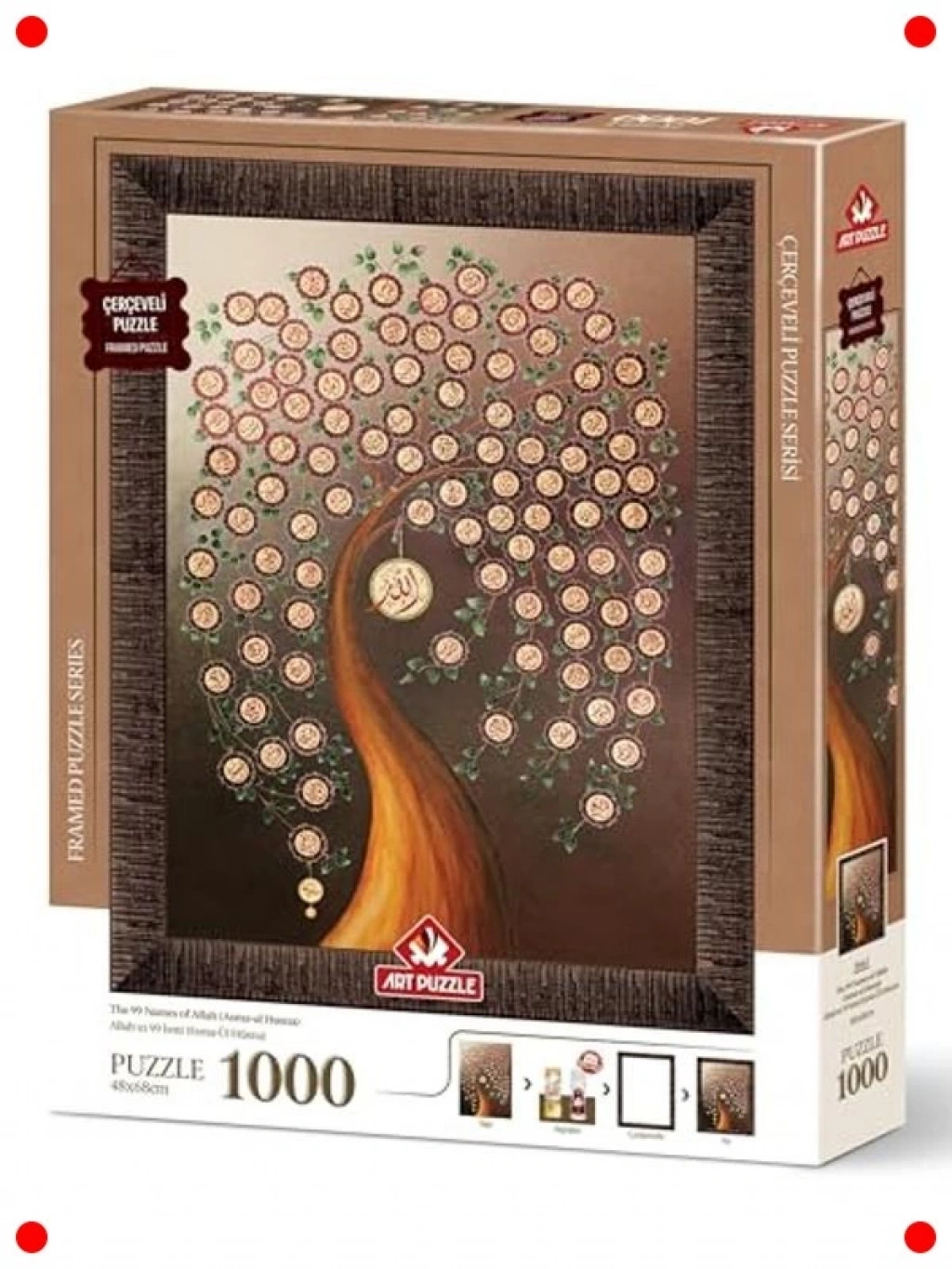 Maneviyatı ve sanatı bir araya getiren bu özel 1000 parçalık yapboz ile Allah'ın 99 İsmini (Esma-ül Hüsna) keşfedin. Zorlu ancak son derece tatmin edici bir birleştirme deneyimi sunan bu yapboz, tamamlandığında evinize huzur ve anlam katacak, çerçevelenebilir eşsiz bir sanat eserine dönüşür. Yüksek kaliteli baskı ve dayanıklı karton malzemeden üretilen parçaları, kolayca bir araya gelerek pürüzsüz bir görüntü oluşturur. Hem yetişkinler hem de gençler için odaklanma ve sabır geliştirici bir aktivitedir. Sevdiklerinize anlamlı bir hediye olarak sunabilir veya kendi evinizde manevi bir atmosfer yaratabilirsiniz. Tüm aile bireyleri için hem eğlenceli hem de öğretici bir etkinlik sunar.