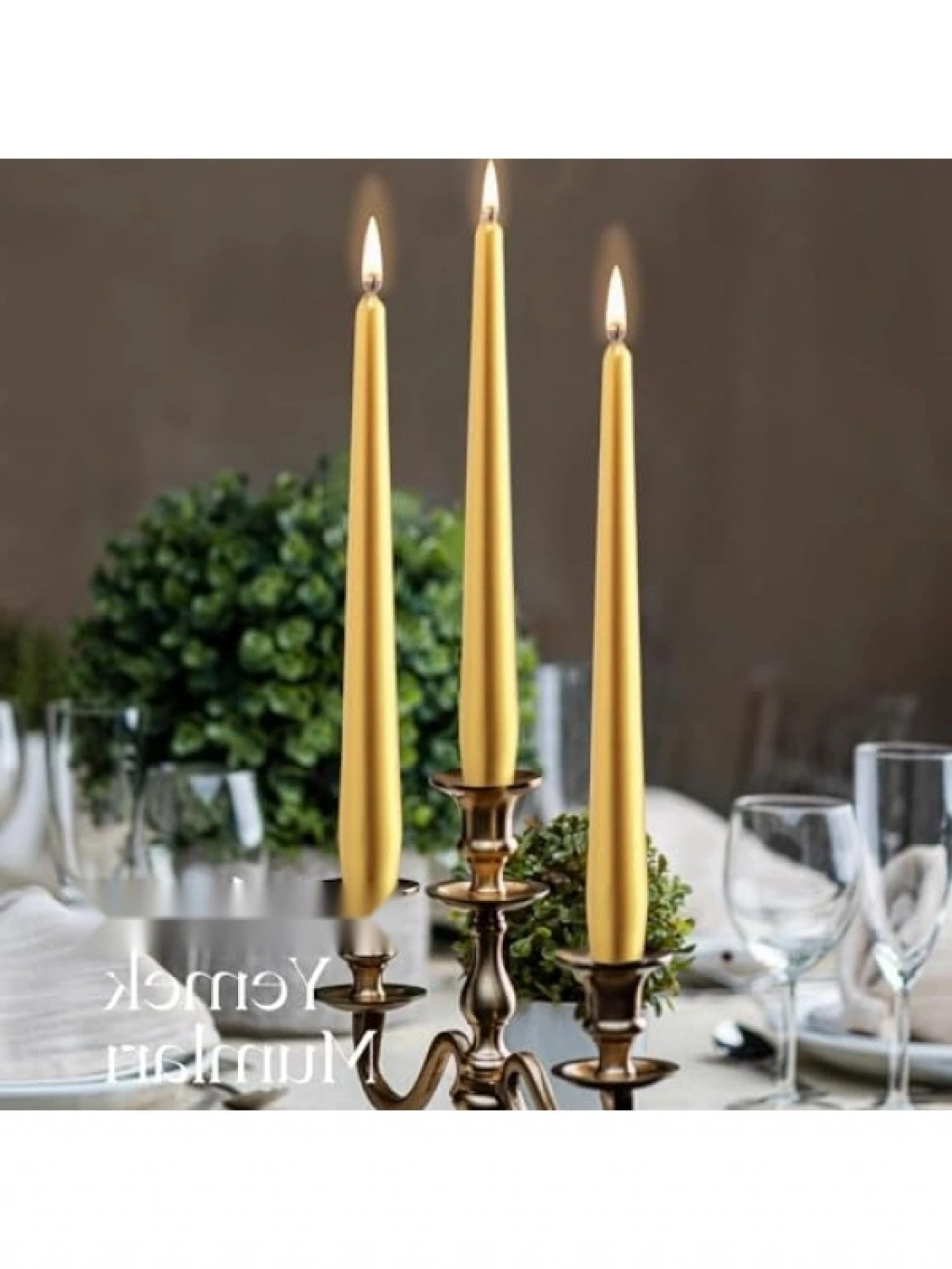 Altın renkli konik şamdan mumları, 7,5 saat yanma süresi ile uzun ömürlü bir aydınlatma sunar. 24,5 cm boyu ile şık bir görünüm sağlayarak akşam yemeklerinize zarafet katar. Palm ve hayvan yağı içermeyen doğal vegan balmumu ile üretilmiştir. Temiz yanma özelliği sayesinde duman veya damlama yapmadan aydınlatma sağlar. Akşam yemekleriniz için mükemmel bir atmosfer yaratır.