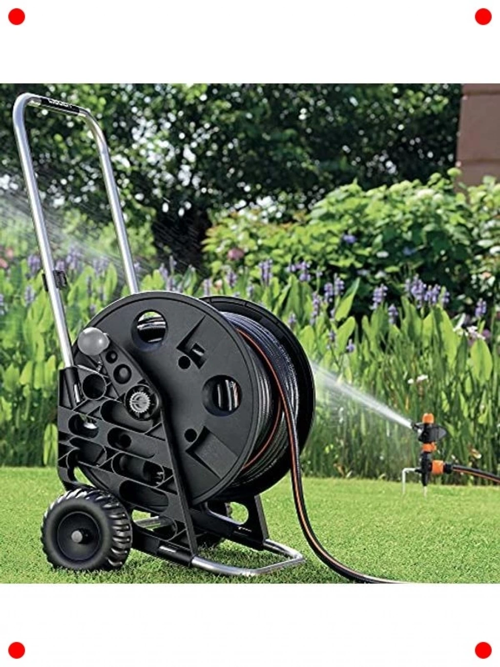 Bahçe hortumunuzu düzenli ve kolayca saklamak için tasarlanmış bu hortum arabası, 65 metreye kadar hortum kapasitesi sunar. Hafif ama sağlam alüminyum yapısı sayesinde hem dayanıklı hem de kolay taşınabilir. Ergonomik kolu ve tekerlekleri, bahçenizin her köşesine rahatça götürmenizi sağlar. Hortumunuzun dolaşmasını ve kırılmasını önleyerek kullanım ömrünü uzatır. Hortumu hızlı ve düzenli bir şekilde sarmak için tasarlanmış mekanizması, işlerinizi pratikleştirir. Estetik siyah tasarımıyla bahçenize modern bir dokunuş katarken, düzenli bir görünüm sağlar. Bahçe işlerinizi kolaylaştıran vazgeçilmez bir yardımcıdır.