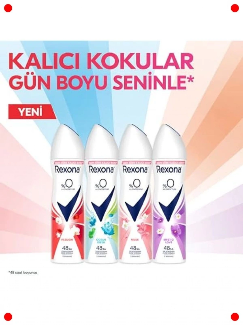 Alüminyum içermeyen bu özel formüllü kadın sprey deodorant, gün boyu süren etkili koruma ve ferahlık sağlar. Tutku dolu esansıyla kendinizi her an enerjik ve özgüvenli hissetmenize yardımcı olur. Cildinize nazik davranan yapısı sayesinde tahrişe yol açmaz ve hassas ciltler için bile uygundur. Ter kokusuna karşı 48 saate kadar süren üstün koruma sunarken, giysilerde beyaz iz bırakmaz. Spor yaparken, iş hayatınızda veya sosyal aktivitelerinizde, her an yanınızda olan bu deodorant ile kendinizi güvende ve taze hissedin.