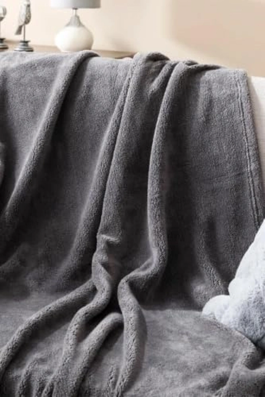 Antrasit peluş çift kişilik battaniye, polar yapısı sayesinde sıcak tutarak konforlu bir uyku deneyimi sunar. Yumuşak dokusu ile yüksek sıcaklık sağlar ve uzun ömürlü kullanım imkanı tanır.