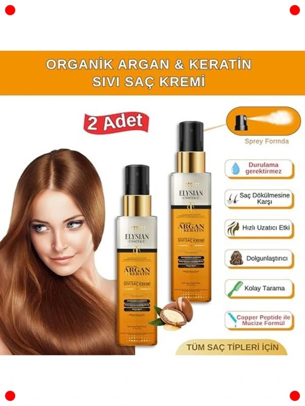 Bu özel formüle sahip Argan ve Keratin içerikli sıvı saç kremi seti, saçlarınıza kapsamlı bir bakım sunar. Durulanmayan yapısı sayesinde pratik ve hızlı bir kullanım sağlarken, saç dökülmesine karşı savaşır, yıpranmış saç tellerini onarmaya yardımcı olur ve saçlara gözle görülür bir dolgunluk kazandırır. Organik Argan yağı saçları derinlemesine besler ve parlaklık verirken, Keratin proteini saç yapısını güçlendirir, kırılmaları azaltır ve elastikiyetini artırır. Saçlarınızı çevresel faktörlere karşı korur, kolay taranmasını sağlar ve elektriklenmeyi önler. 2'li set avantajıyla uzun süreli ve etkili bir saç bakımı için idealdir. Daha sağlıklı, güçlü ve canlı saçlara kavuşun.
