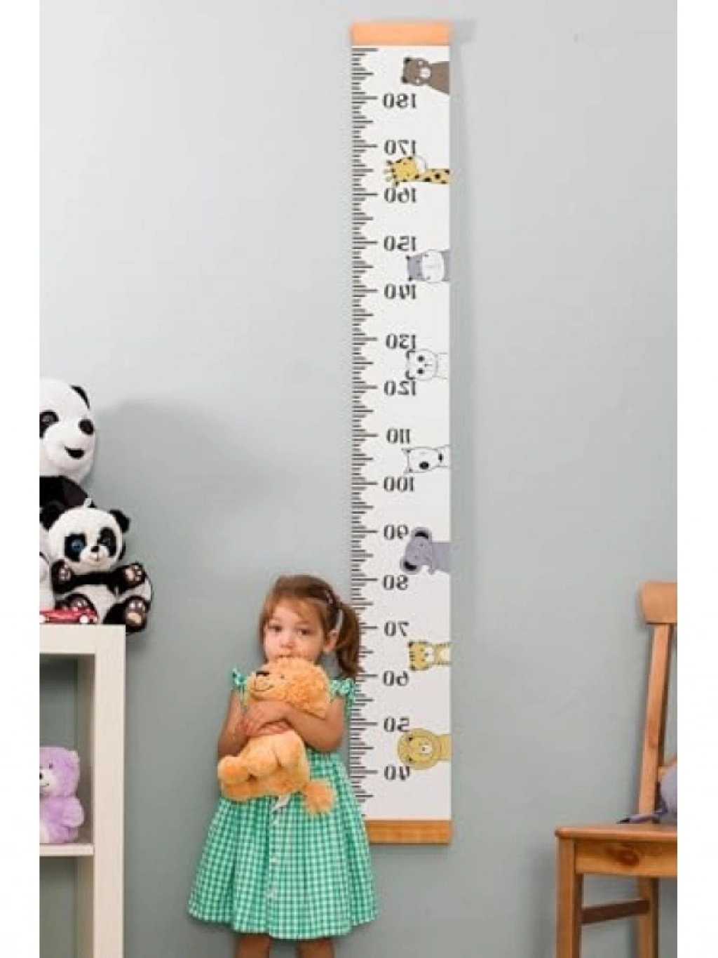 170x20 cm boyutlarındaki bu asılabilir boy ölçme cetveli, çocuklarınızın büyümesini takip etmenize yardımcı olur. Doğal dokulu kanvas kağıdına baskı ile üretilmiştir ve ahşap çıtalarla desteklenmiştir. Duvara monte edilerek 193 cm yüksekliğe kadar ölçüm yapabilir. Estetik görünümü ile çocuk odalarınızı süslerken, aynı zamanda kullanışlı bir araç olarak işlevsellik sunar. Doğum günü hediyesi olarak da harika bir seçenektir.