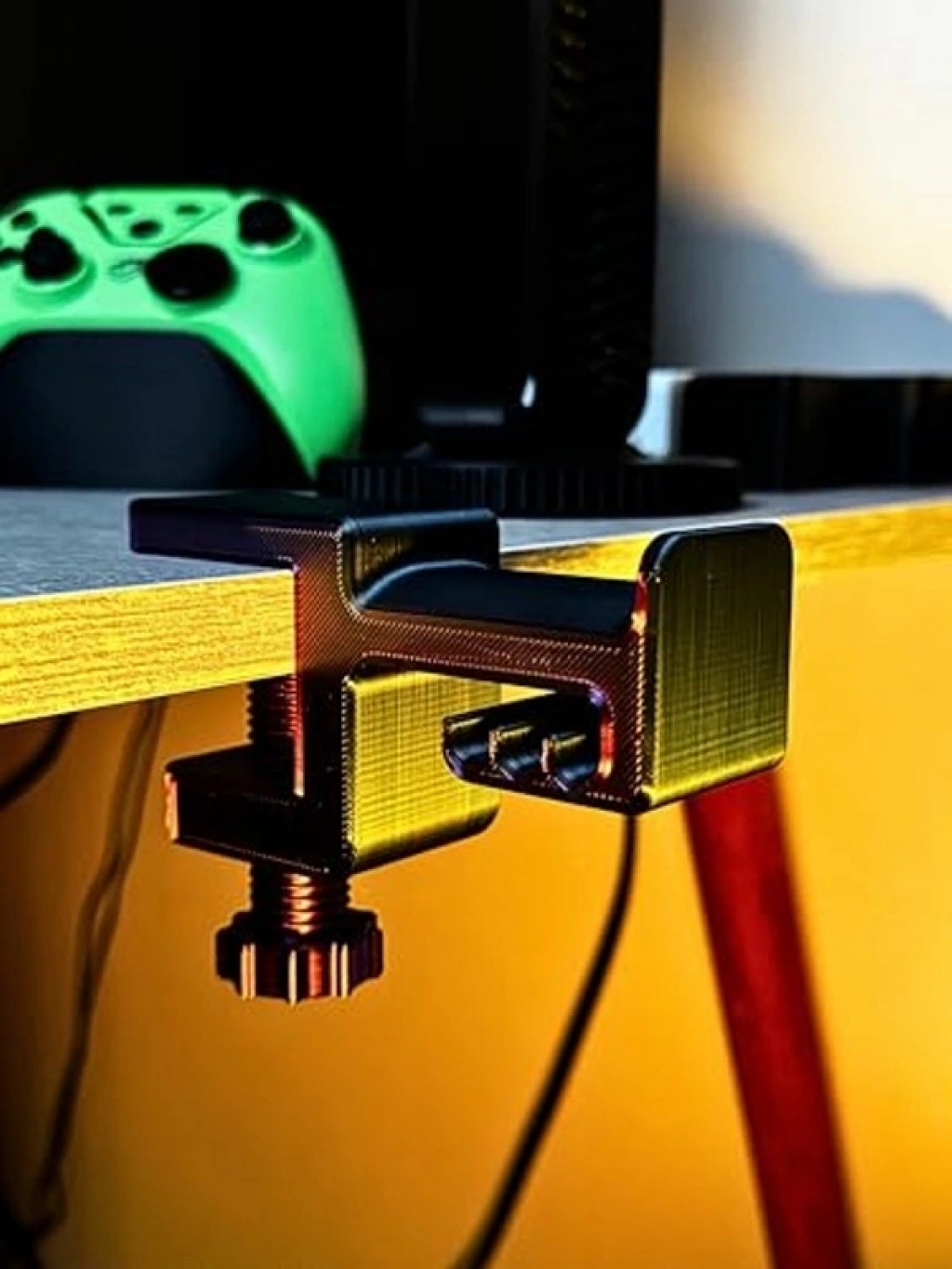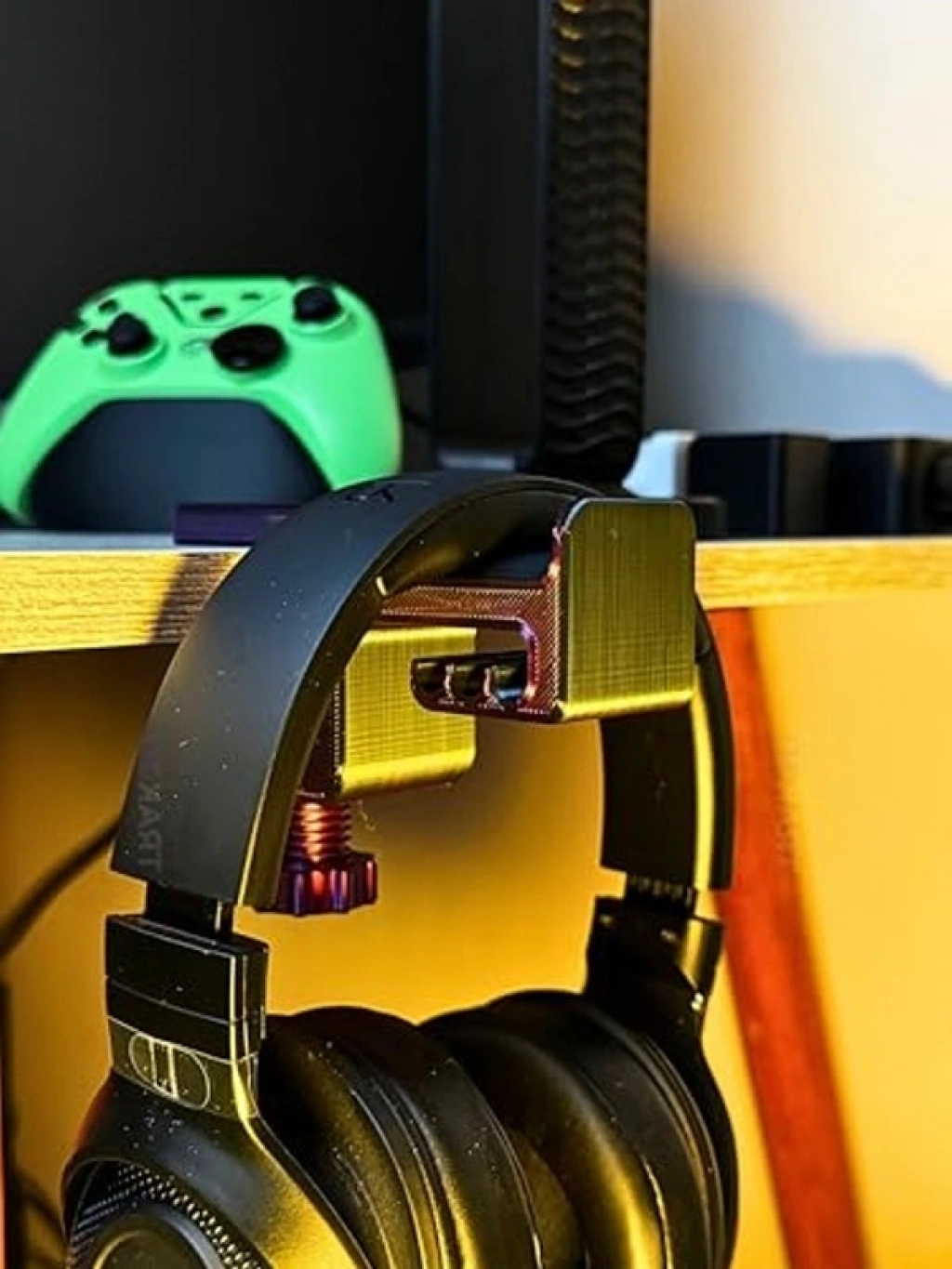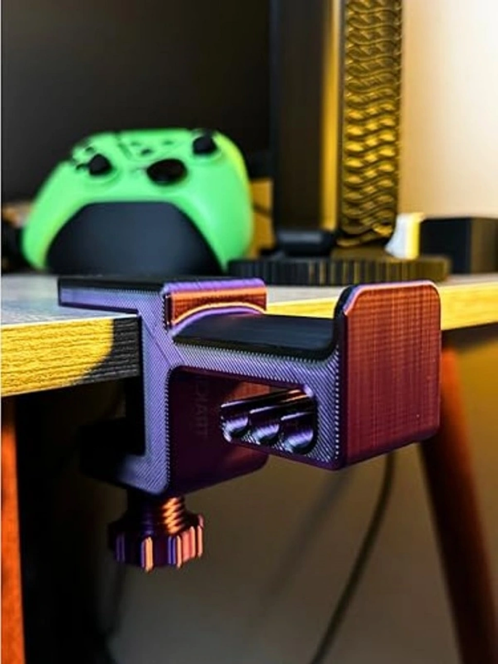 Asılabilir kulaklık standı, 3D premium tasarımı ile dikkat çeker. Mor ve siyah renk uyumu ile masaüstünüze estetik bir hava katar. Geliştirilmiş gövdesi, daha sağlam ve dengeli bir yapı sunarken, kulaklığınızı korumak için tasarlanmıştır. Yer kaplamadan masanın kenarına asılabilir, Türkiye'de 3D baskı teknolojisiyle üretilmiştir.