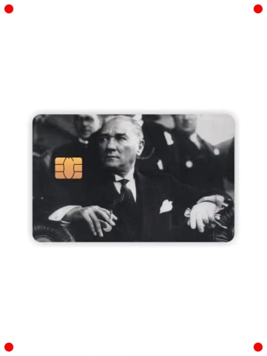 Günlük kullandığınız kimlik, banka veya toplu taşıma kartlarınıza kişisel bir dokunuş katmak ve aynı zamanda korumak için tasarlanmış, Mustafa Kemal Atatürk temalı özel kart kaplama stickerı. Yüksek çözünürlüklü baskısıyla Atatürk'ün karizmatik siluetini ve imzasını kartlarınıza taşırken, milli değerlerimize olan bağlılığınızı da gösterir. Yüksek kaliteli malzemeden üretilen bu sticker, kartlarınızı çizilmelere, yıpranmalara ve suya karşı korur. Kolayca uygulanabilir ve çıkarılabilir yapısı sayesinde kartlarınızda herhangi bir yapışkan kalıntısı bırakmaz. Hem estetik hem de fonksiyonel olan bu ürünle kartlarınıza özel bir anlam katın.