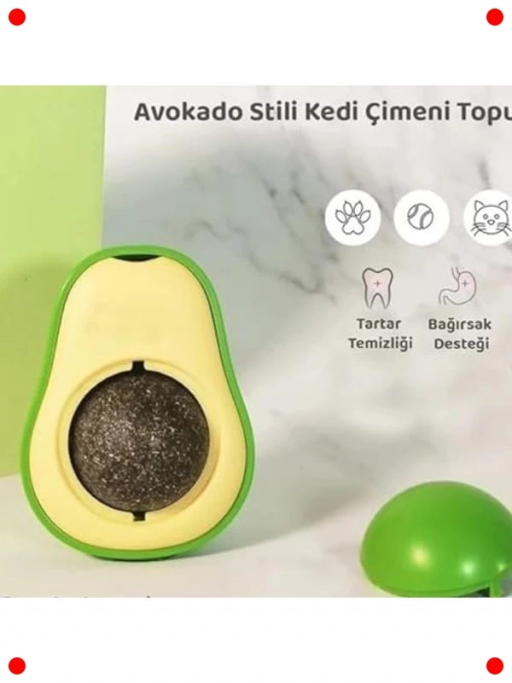 Kedinizin içgüdülerini harekete geçirecek ve onu eğlendirecek bu avokado şeklinde kedi nanesi topu oyuncağı, doğal catnip ile zenginleştirilmiştir. Catnip, kedinizin ruh halini yükseltir, stresini azaltır ve onu oyun oynamaya teşvik eder. Yapışkanlı tasarımı sayesinde istediğiniz yere kolayca sabitleyebilir, kedinizin oyuncakla etkileşimini kolaylaştırabilirsiniz. Oyuncağın çiğnenebilir yapısı aynı zamanda diş temizliğine de yardımcı olur. Kedinizin egzersiz yapmasını ve zihinsel olarak uyarılmasını sağlayarak sıkılmasını engeller. Kedinize keyifli ve sağlıklı bir oyun deneyimi sunun.