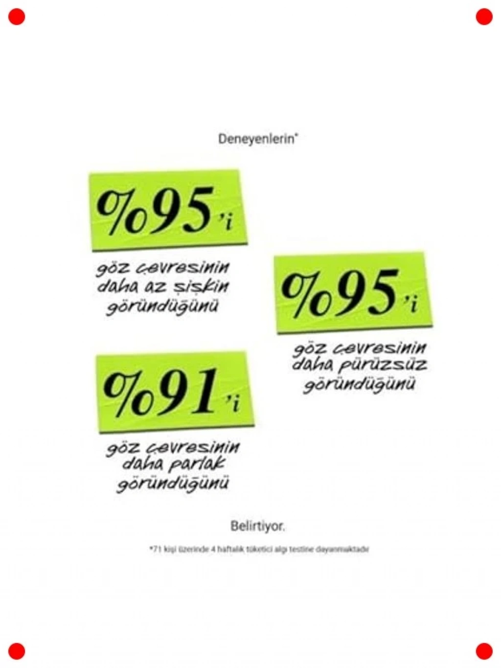 Avokadonun zengin besleyici özellikleriyle güçlendirilmiş bu göz kremi, hassas göz çevresi cildini yoğun bir şekilde nemlendirir ve besler. Kuru ve nemsiz göz çevresi için anında rahatlama sağlar, ince çizgi ve kırışıklıkların görünümünü azaltmaya yardımcı olur. Cildin elastikiyetini artırarak daha sıkı ve genç bir görünüm kazandırır. Kremsi yapısı kolayca emilir ve yağlı bir his bırakmaz. Düzenli kullanımla göz çevrenizin daha aydınlık, canlı ve dinlenmiş görünmesini destekler.