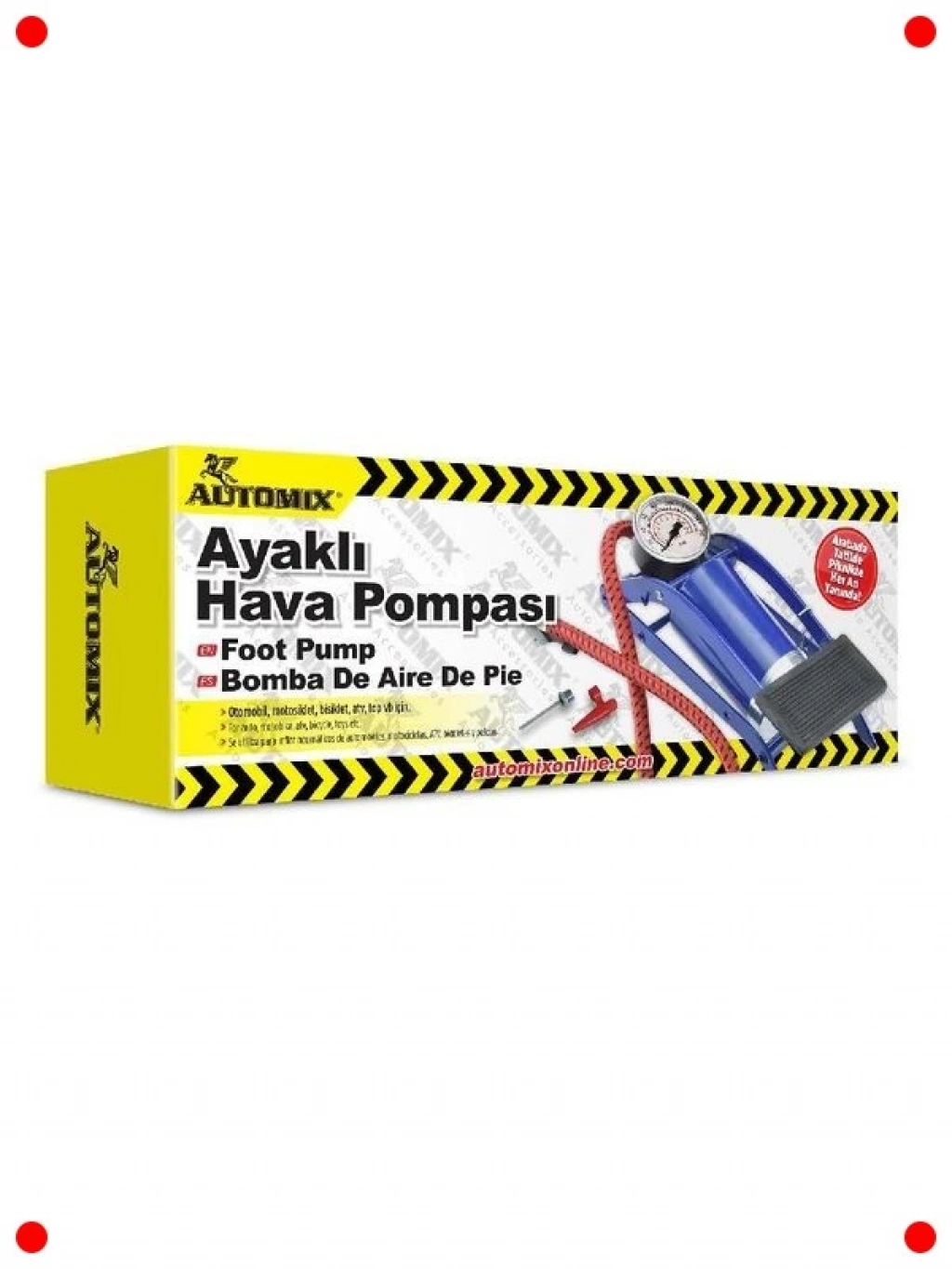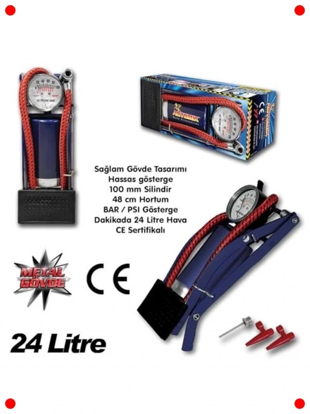 Arabanızın, bisikletinizin veya motosikletinizin lastiklerini kolayca şişirmek için tasarlanmış bu ayaklı hava pompası, her evde bulunması gereken pratik bir araçtır. Dayanıklı çelik gövdesi ve kaymaz ayak tabanı ile uzun ömürlü kullanım sunar. Ergonomik tasarımı sayesinde minimum eforla maksimum hava basıncı sağlar. Kolay okunabilir basınç göstergesi, lastiklerinizin doğru seviyede şişirilmesini garantiler. Çok amaçlı valf adaptörleri sayesinde farklı türdeki lastiklere ve şişme ürünlere uyum sağlar. Acil durumlarda veya düzenli bakım için idealdir, kompakt yapısıyla kolayca saklanabilir ve her an kullanıma hazırdır.