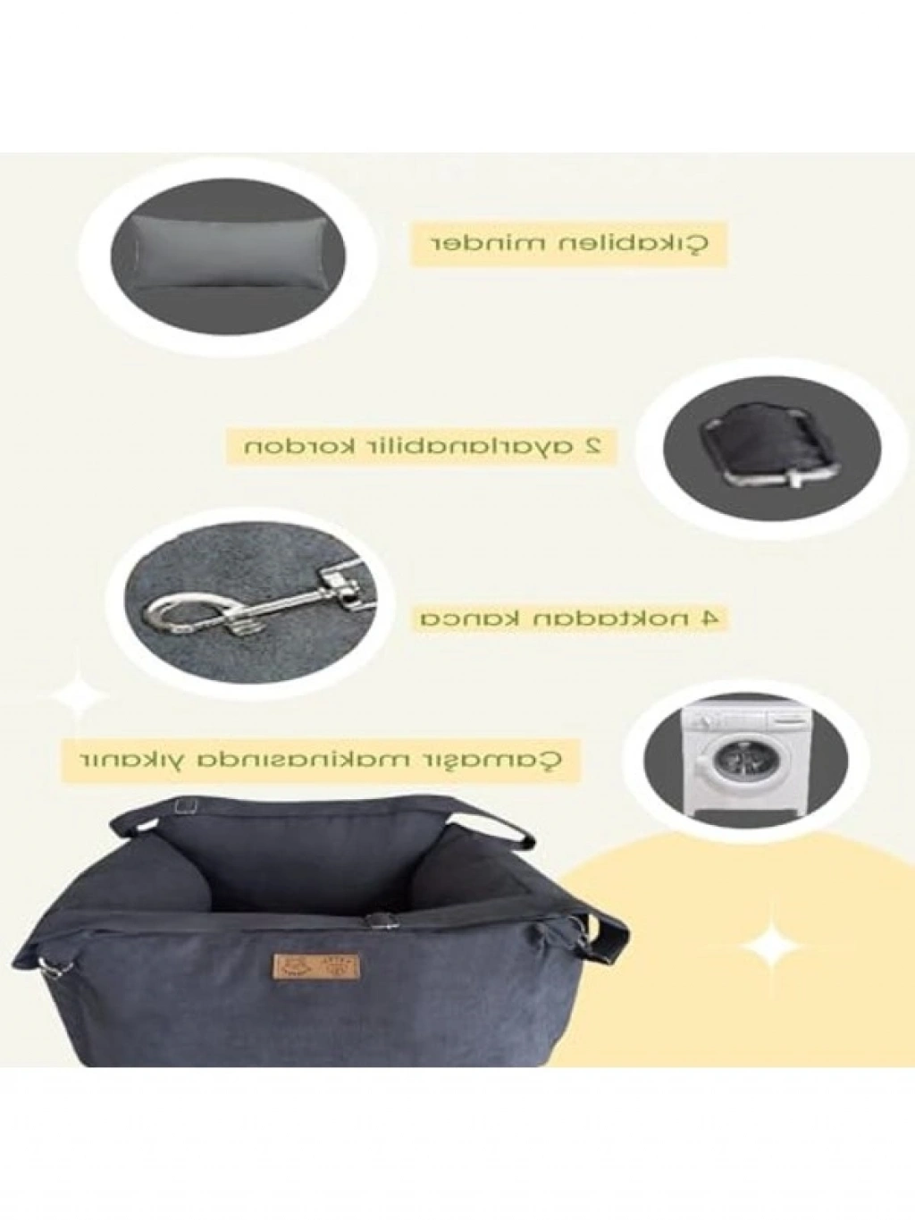 Antrasit rengindeki ayarlanabilir çift kordonlu seyahat koltuğu, 1. sınıf süet kumaşla üretilmiştir. Hayvan sağlığına uygun malzemeleri ile konforlu bir uyku alanı sunar, kaydırmaz alt yapısı ile güvenli bir deneyim sağlar.