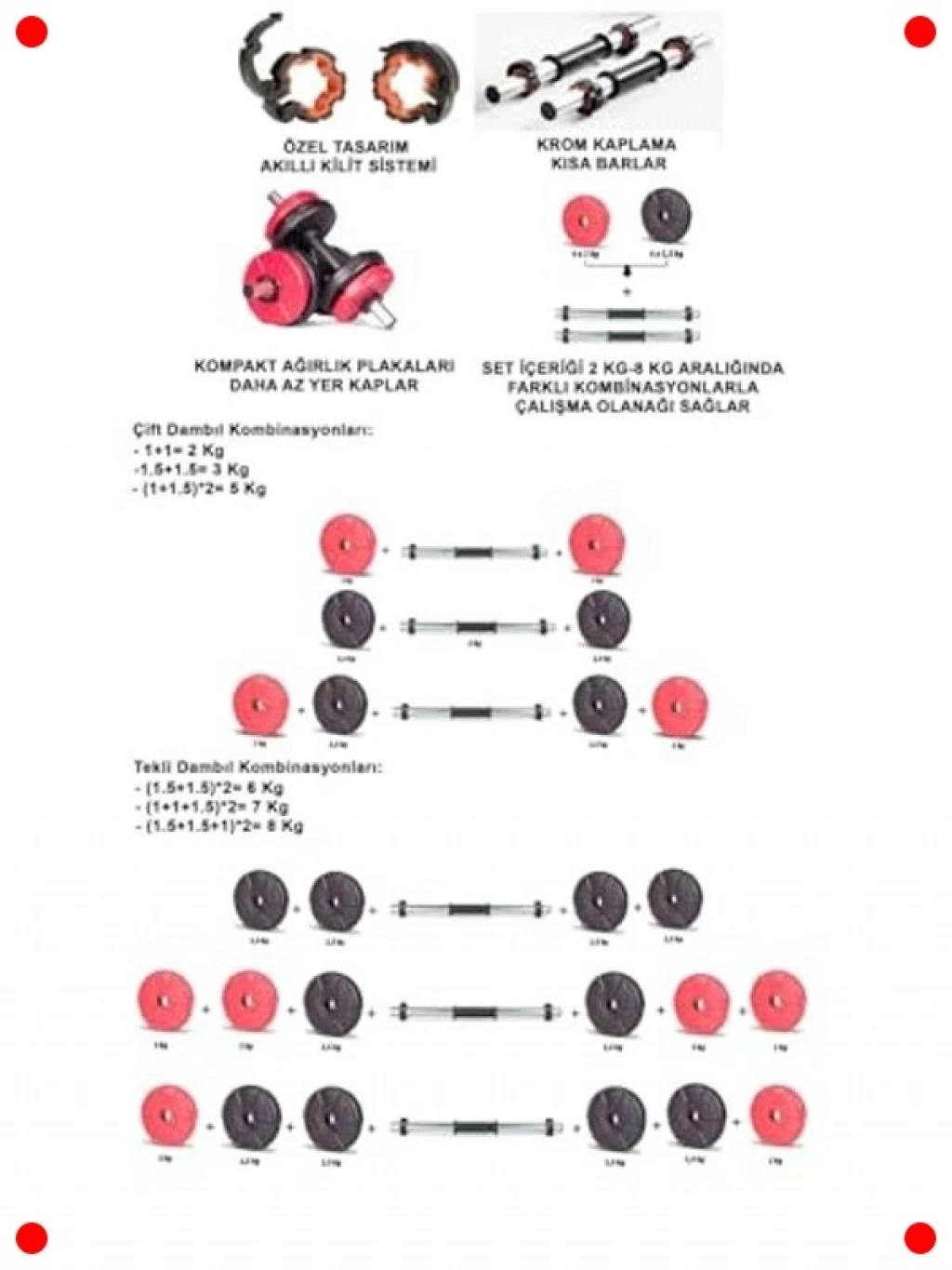Evde veya spor salonunda tam vücut antrenmanı yapmak isteyenler için tasarlanmış bu 11 kg'lık ayarlanabilir dambıl seti, 6 farklı ekipmanı tek bir sette sunar. Farklı ağırlık seçenekleriyle kas geliştirme, güç antrenmanı ve dayanıklılık çalışmalarınızı kişiselleştirebilirsiniz. Dambıl, halter, kettlebell gibi farklı kullanım modlarıyla egzersiz çeşitliliğinizi artırır. Yer tasarrufu sağlayan akıllı tasarımı sayesinde küçük alanlarda bile rahatlıkla kullanılabilir. Kaymaz yüzeyli tutuş alanları, güvenli ve konforlu bir antrenman deneyimi sunar. Tüm fitness seviyeleri için uygundur.