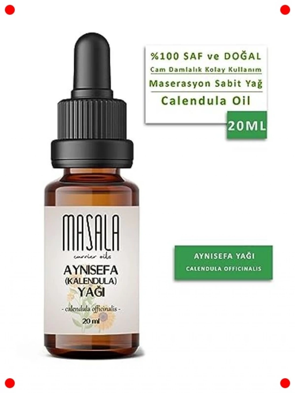 Doğanın şifalı dokunuşunu cildinize taşıyan aynısefa (kalendula) yağı. 20 ml'lik bu özel formül, cildinizi rahatlatmak ve nemlendirmek için tasarlanmıştır. Hassas ciltler dahil tüm cilt tipleri için uygun olan bu yağ, cildin doğal bariyerini destekler. Kuruluk, tahriş ve kızarıklık gibi cilt sorunlarının giderilmesine yardımcı olur. Cildinize nazikçe uygulandığında, cildin daha yumuşak, pürüzsüz ve sağlıklı görünmesini sağlar. Masaj yağı olarak veya nemlendirici kreminize birkaç damla ekleyerek kullanabilirsiniz. Cildin doğal güzelliğini ortaya çıkarmak için ideal bir yardımcıdır.