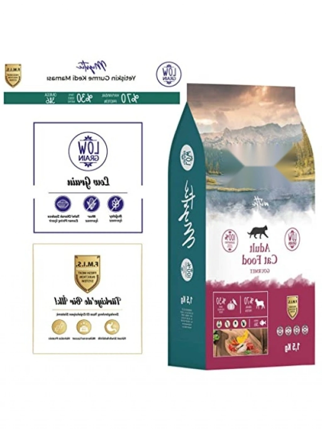 Gurme lezzetiyle kedinizin damak tadına hitap eden bu az tahıllı kuru mama, 1,5 kilogramlık paketinde yüksek kaliteli içeriklerle zenginleştirilmiştir. Az tahıllı formülü, sindirim sistemine dosttur ve alerji riski taşıyan kediler için idealdir. Kedinizin sağlıklı bir şekilde beslenmesi için gerekli olan vitamin ve mineralleri içerir. Her öğün, kedinizin ihtiyaçlarına uygun dengeli bir beslenme sunar.