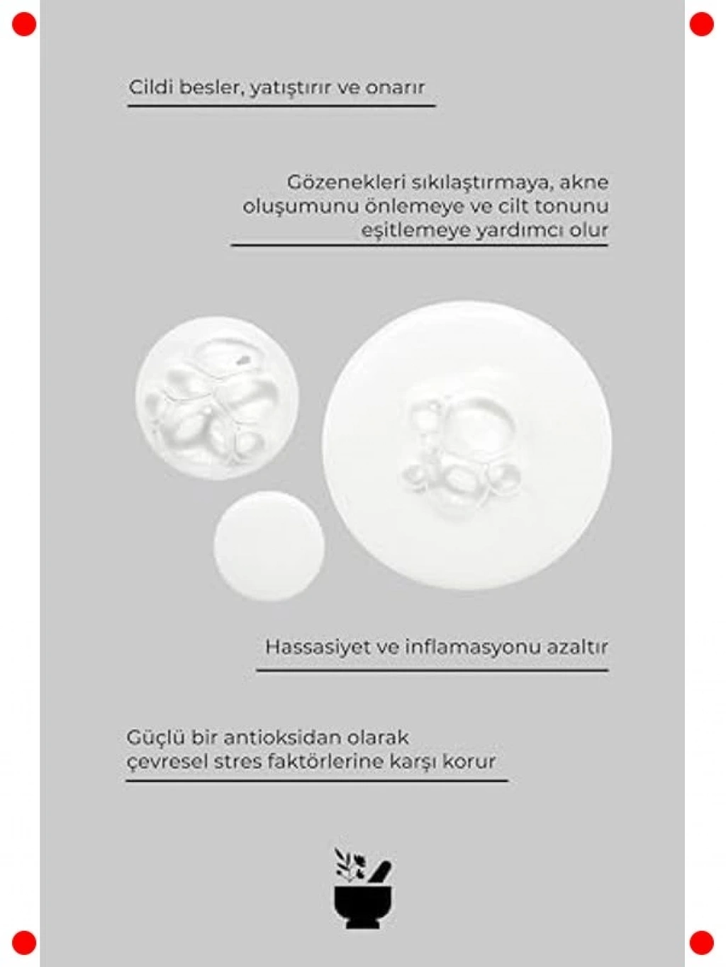 Cildinizdeki leke görünümünü azaltmaya yardımcı olan bu serum, %10 Azelaik Asit ve Yeşil Çay özü ile zenginleştirilmiştir. Cilt tonu eşitsizliklerini hedef alarak daha aydınlık ve pürüzsüz bir cilt görünümü sunar. Azelaik asit, cildin yenilenme sürecini desteklerken, yeşil çayın antioksidan özellikleri cildi çevresel faktörlere karşı korur ve sakinleştirir. Düzenli kullanımda, akne sonrası oluşan lekelerin ve güneş lekelerinin görünümünün hafiflemesine katkıda bulunur. Hafif formülü sayesinde ciltte ağırlık yapmaz ve hızla emilir. Tüm cilt tipleri için uygundur, özellikle leke eğilimli ve ton eşitsizliği yaşayan ciltler için idealdir. Cildinizi daha dengeli ve canlı bir görünüme kavuşturun.
