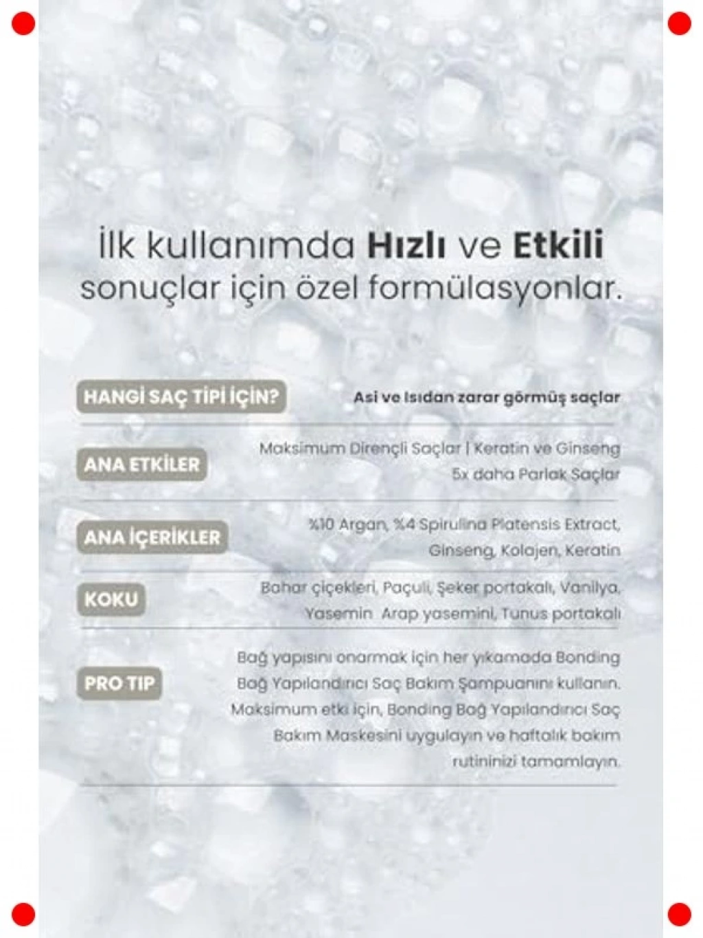 Yıpranmış ve işlem görmüş saçlar için özel olarak formüle edilmiş bu bağ yapılandırıcı bakım şampuanı ile saçlarınızın gücünü yeniden keşfedin. Saç tellerindeki kırılgan bağları onarmaya ve güçlendirmeye yardımcı olan yenilikçi formülü, saçlarınızın daha sağlıklı, parlak ve dirençli görünmesini sağlar. Kimyasal işlemler, ısı şekillendirme veya çevresel faktörler nedeniyle hasar görmüş saçları hedef alarak derinlemesine bakım sunar. Seyahat boy 100 ml ambalajıyla, tatillerinizde veya spor çantanızda kolayca taşıyabilir, saç bakım rutininizi gittiğiniz her yere götürebilirsiniz. Saç dökülmesi veya kırılmaları azaltmaya yardımcı olurken, saçlarınıza yumuşaklık ve esneklik kazandırır. Profesyonel bir bakım deneyimi için idealdir.